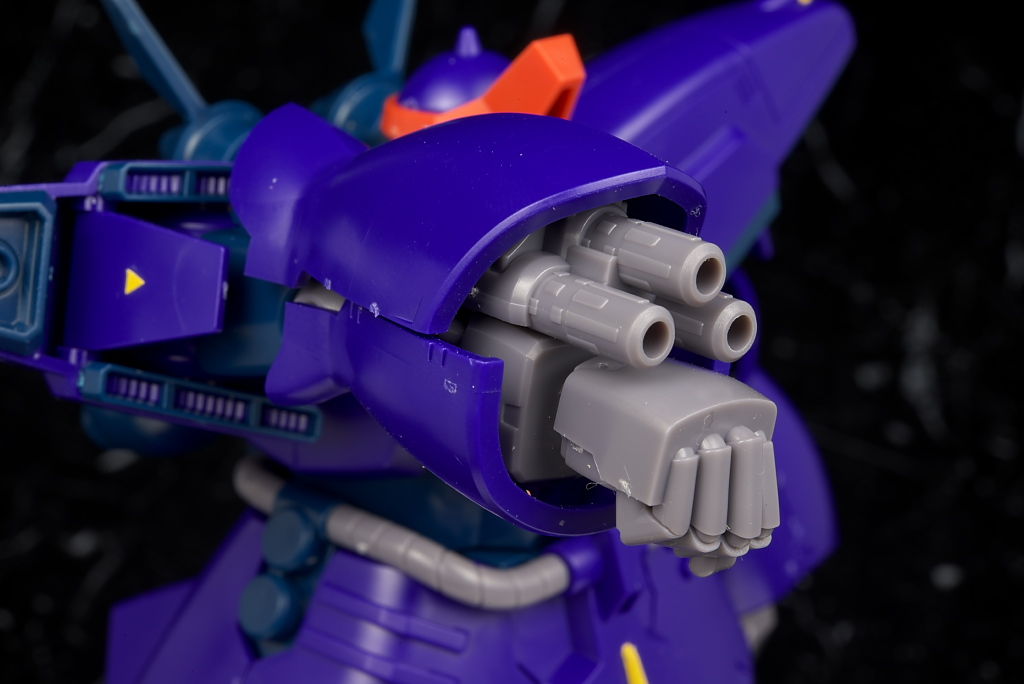 袖の中には3連装ビームキャノン。前腕パーツを後ろに付け替えて展開する方式。