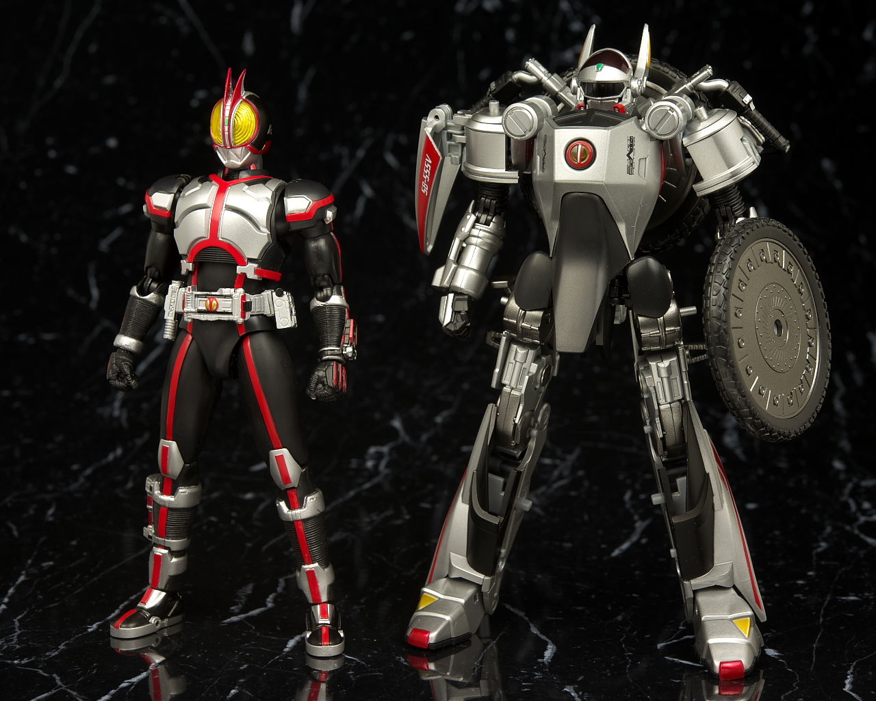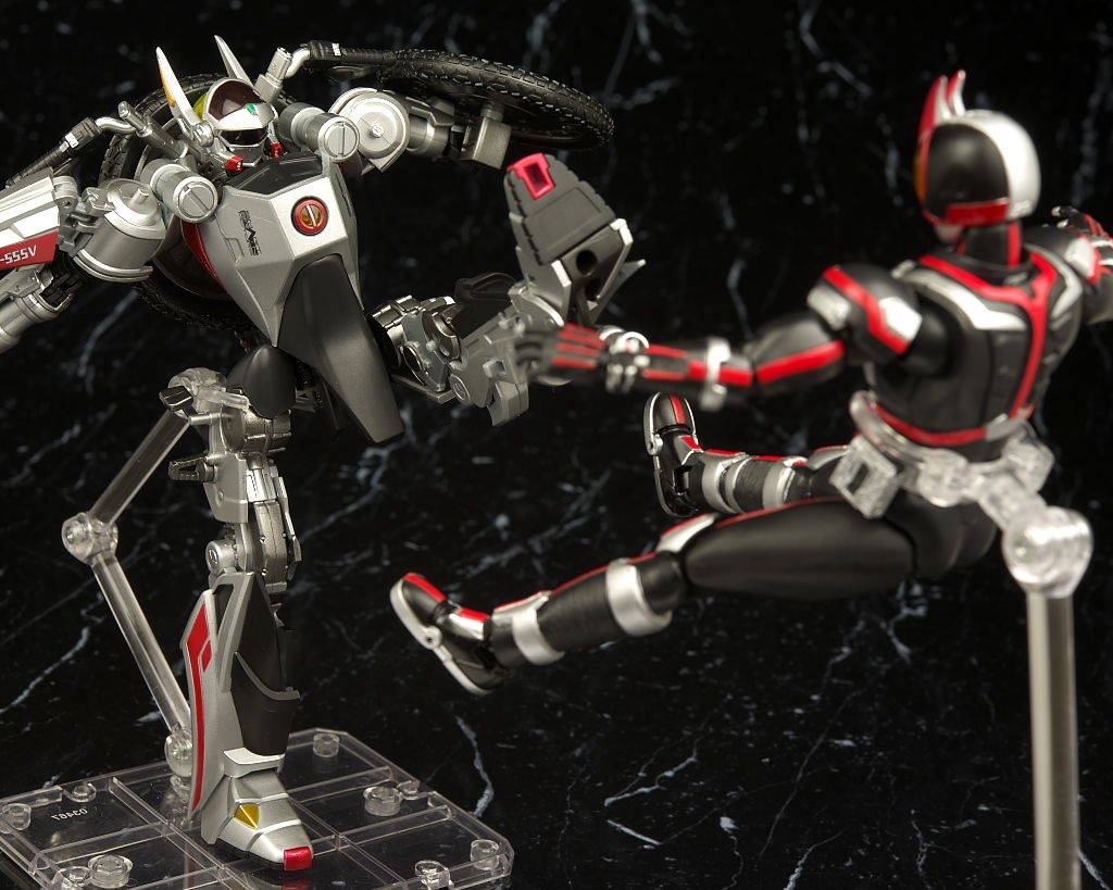 ファイズと並べると若干小さい気もしますが変形ギミックがあることを考えればある程度は仕方ないかも。