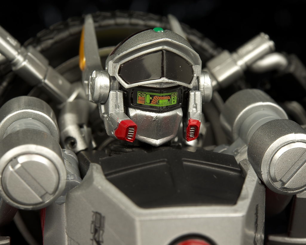 顔。頭頂部やバイザーは塗装で再現。額や頬部分など塗装されてる箇所の塗り分けも概ね正確でした。