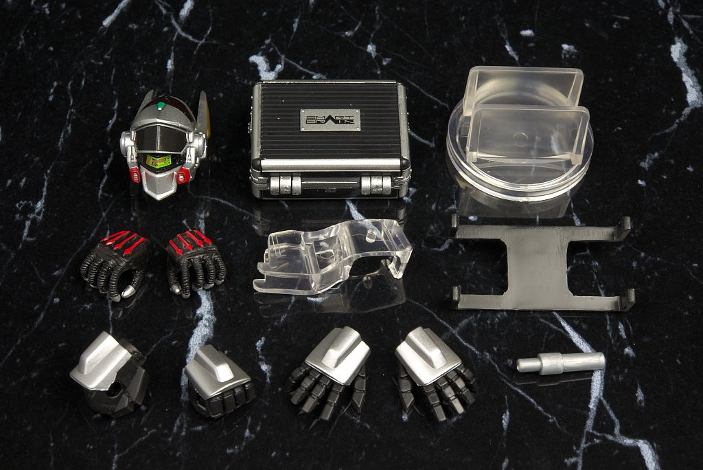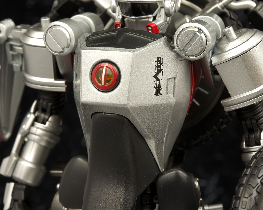 各部位など。胸板が厚く胴体はごつめ。中央部のスイッチはクリアパーツが使われスマートブレインのロゴプリントも綺麗。