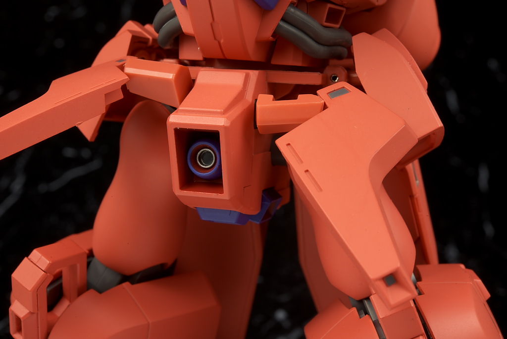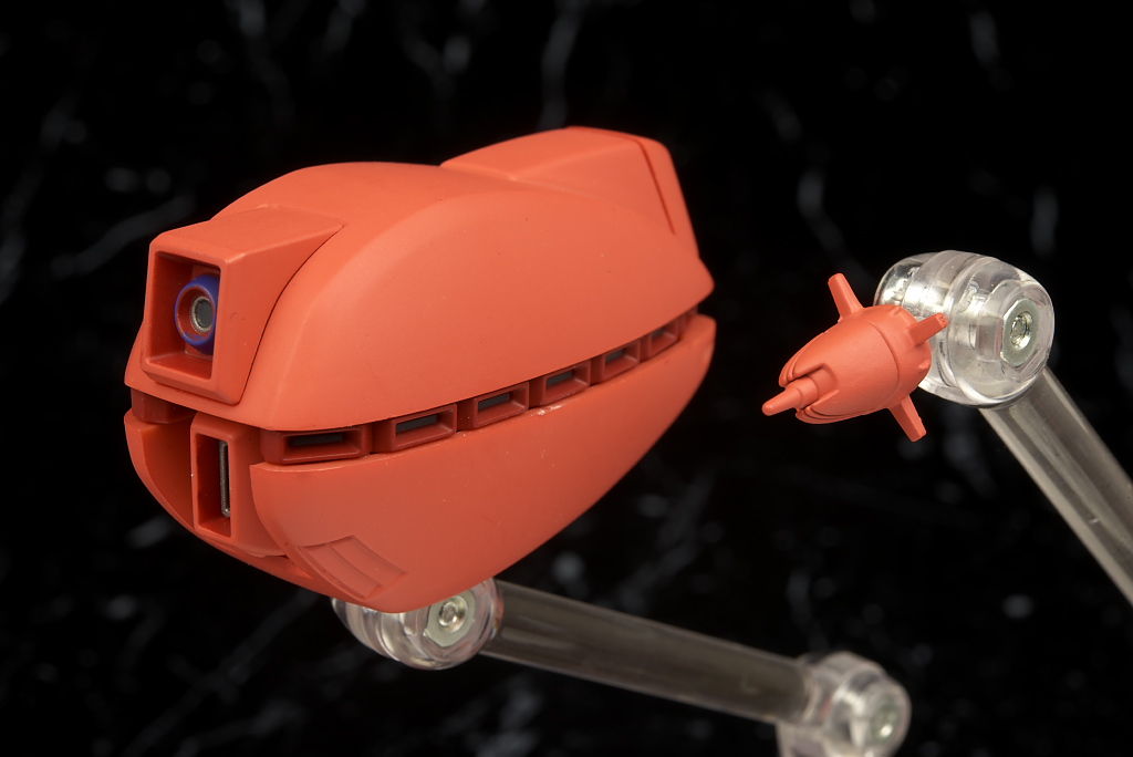 モノアイは差し替えで向きを変更可能。頭部の情報量が多くアンテナなどもシャープでかなりの格好良さ。