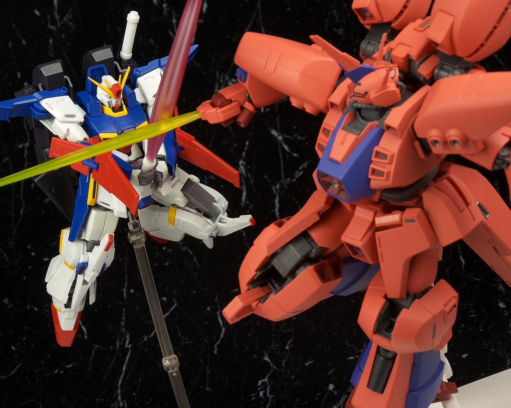 ZZと。スケールが違うので相当なサイズ差がありますがゲーマルクが大型機ということもありそこまでの違和感はなし。