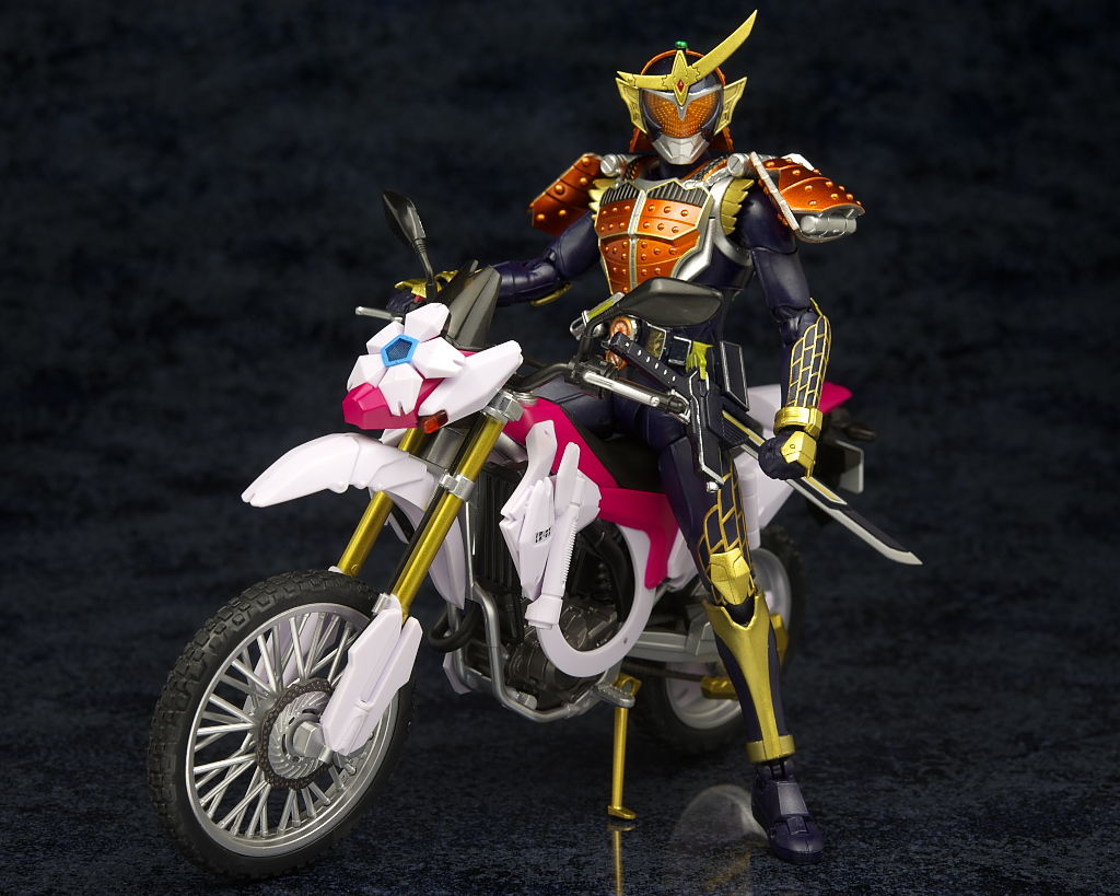乗せた状態。鎧武の可動が優れてることもありハンドルも握らせやすかったです。