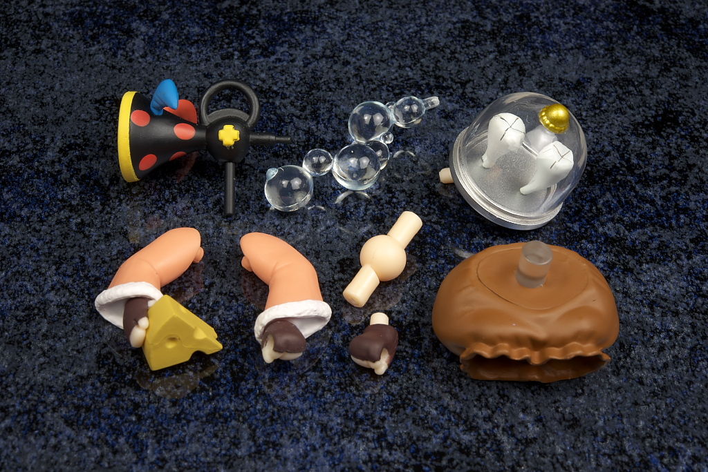 腕や足のパーツは少なめなのでそんなに派手なポーズはつけられないもののお座りポーズ用の腰パーツが付いてたりラッパやトレイなど小物類も大量でお菓子の魔女も2体あるので賑やかなディスプレイが出来、内容的にも全く不満はなかったです。