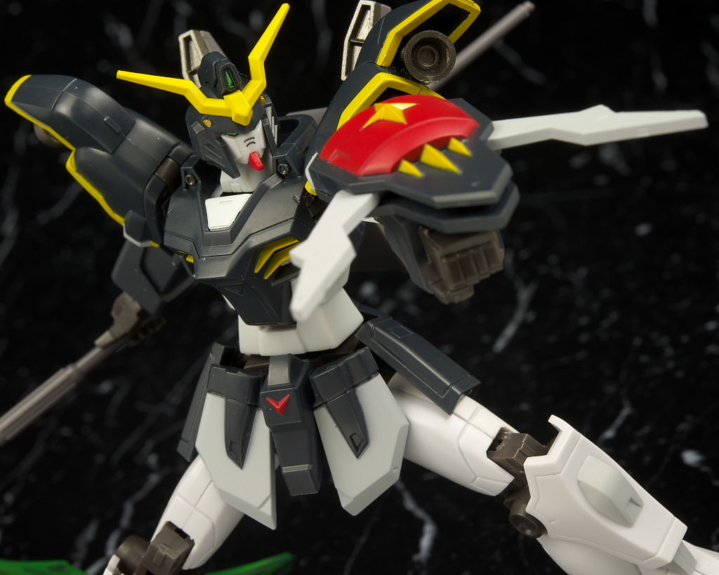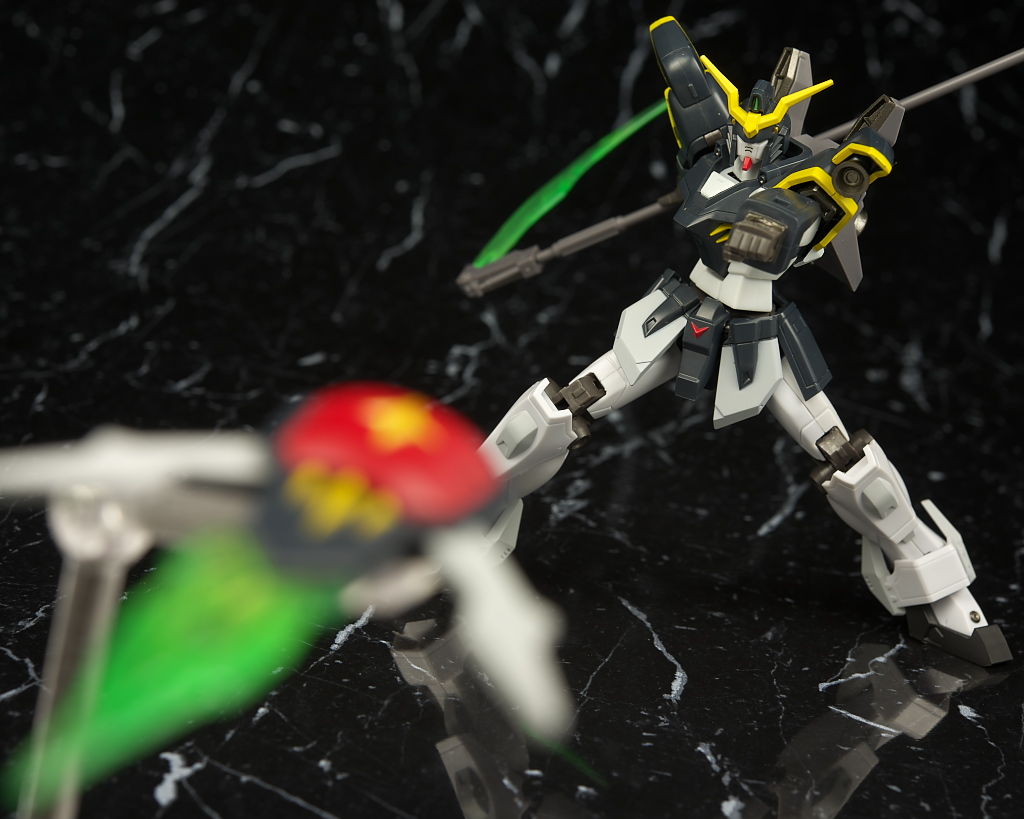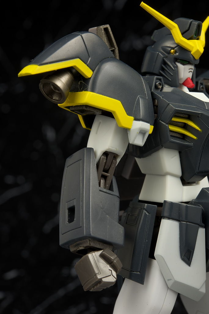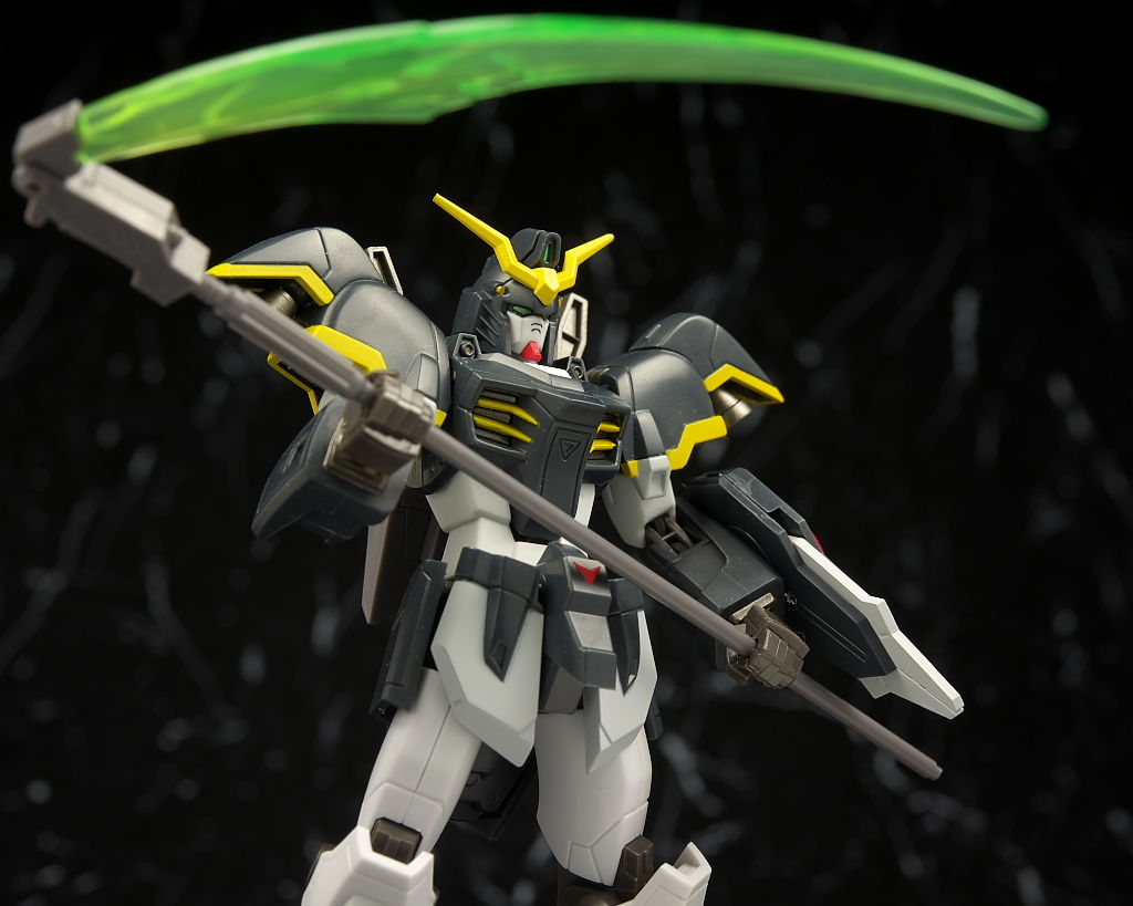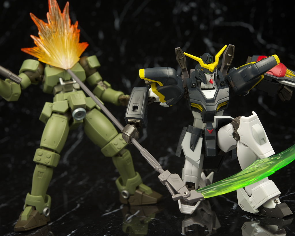 デスサイズヘルと。同じなのは脚部くらいで上半身は別物に。白黒の色もほぼ同じですが黄色はやや薄くなってました。
