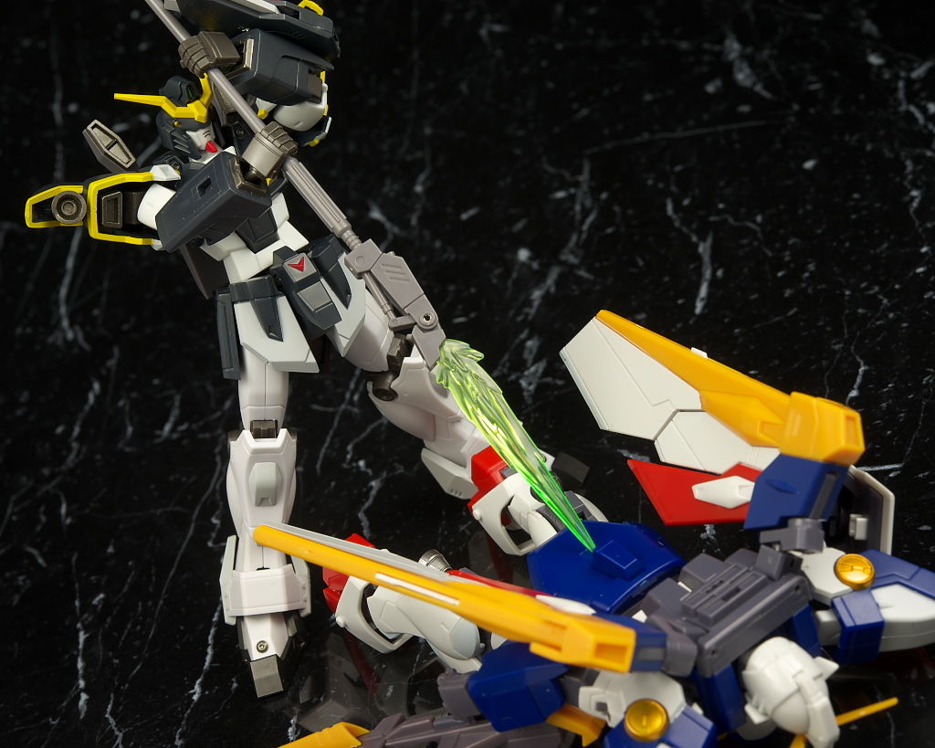 斬り上げ。関節の作りはデスサイズヘルと変わりないので可動もほぼ同じ。
