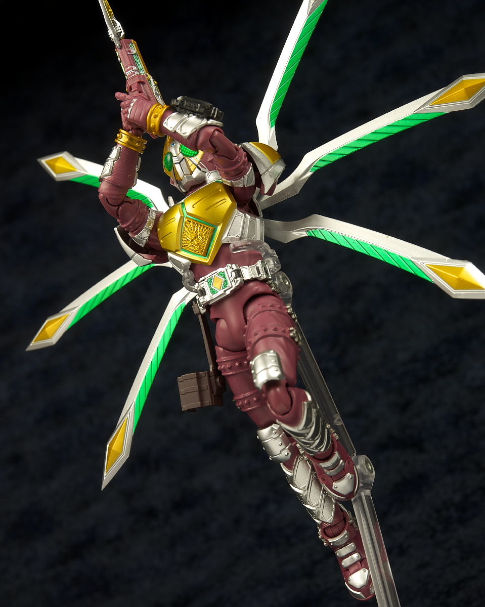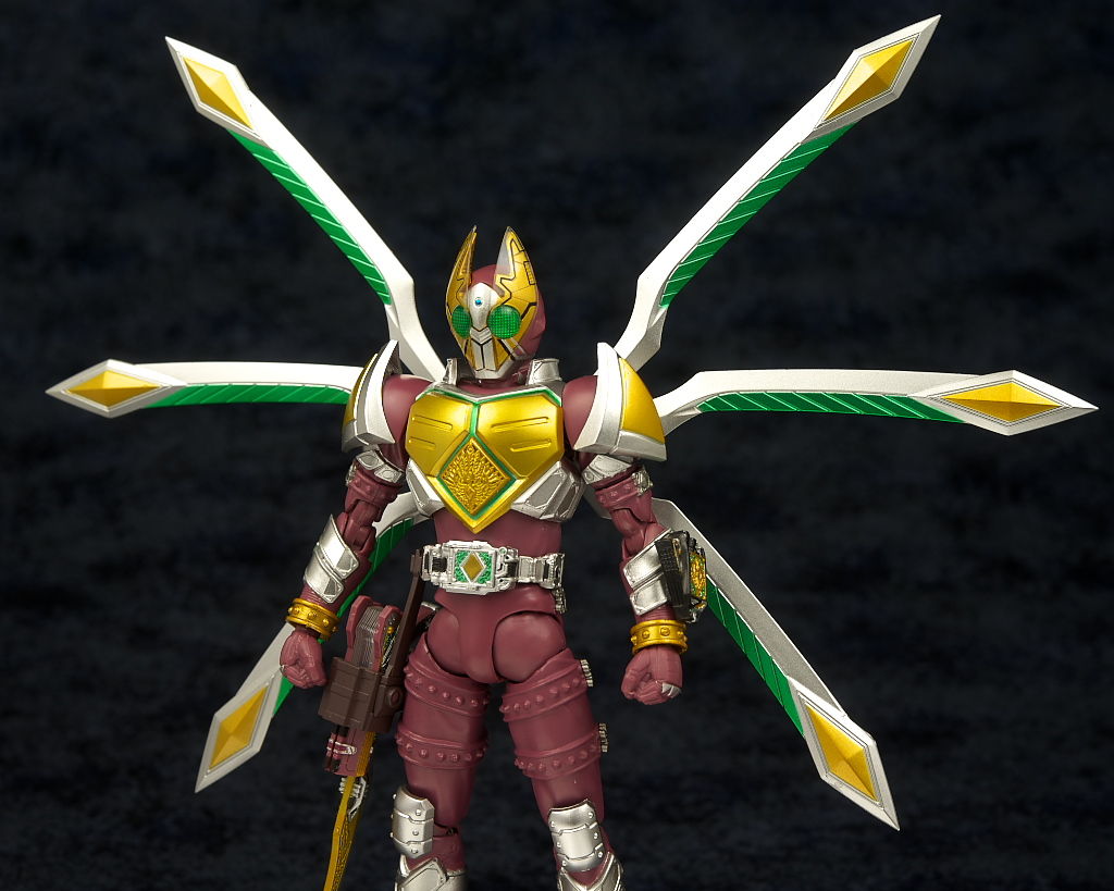 変更部分の金色は色味など劇中のイメージ通りで胸部のレリーフ造形なども細かく、特に目立つ違いのオリハルコンウィングもメタリック塗装など派手で展開するとかなりのボリュームになって格好良かったです。