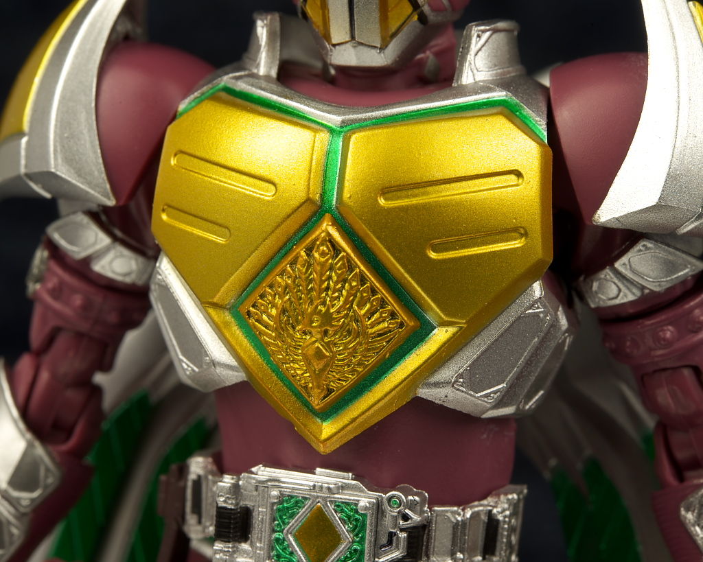 各部位など。胸部も金色になり中央にはピーコックアンデッドのレリーフが追加。キングF同様造形もかなり緻密。