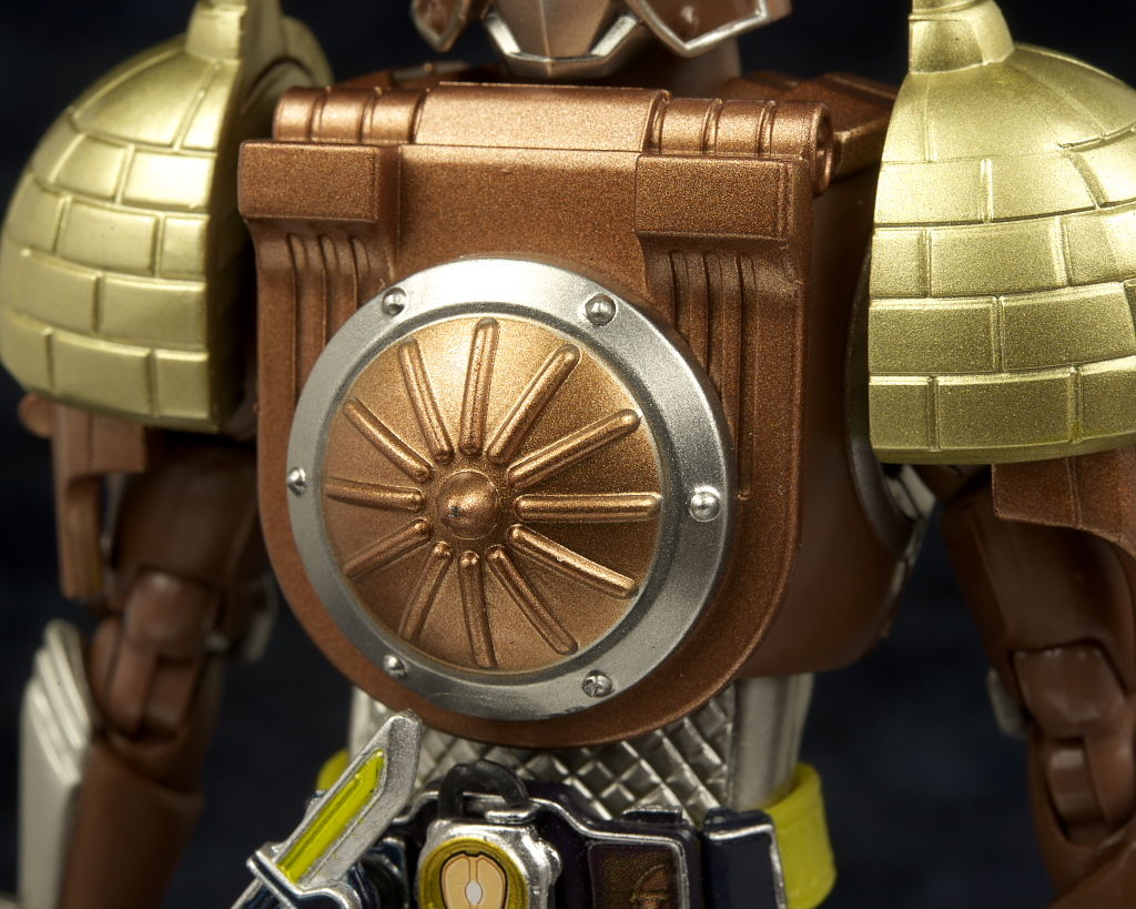 各部位など。胸部の鎧は他のライダー同様メタリック塗装で見栄えのする仕上がり。