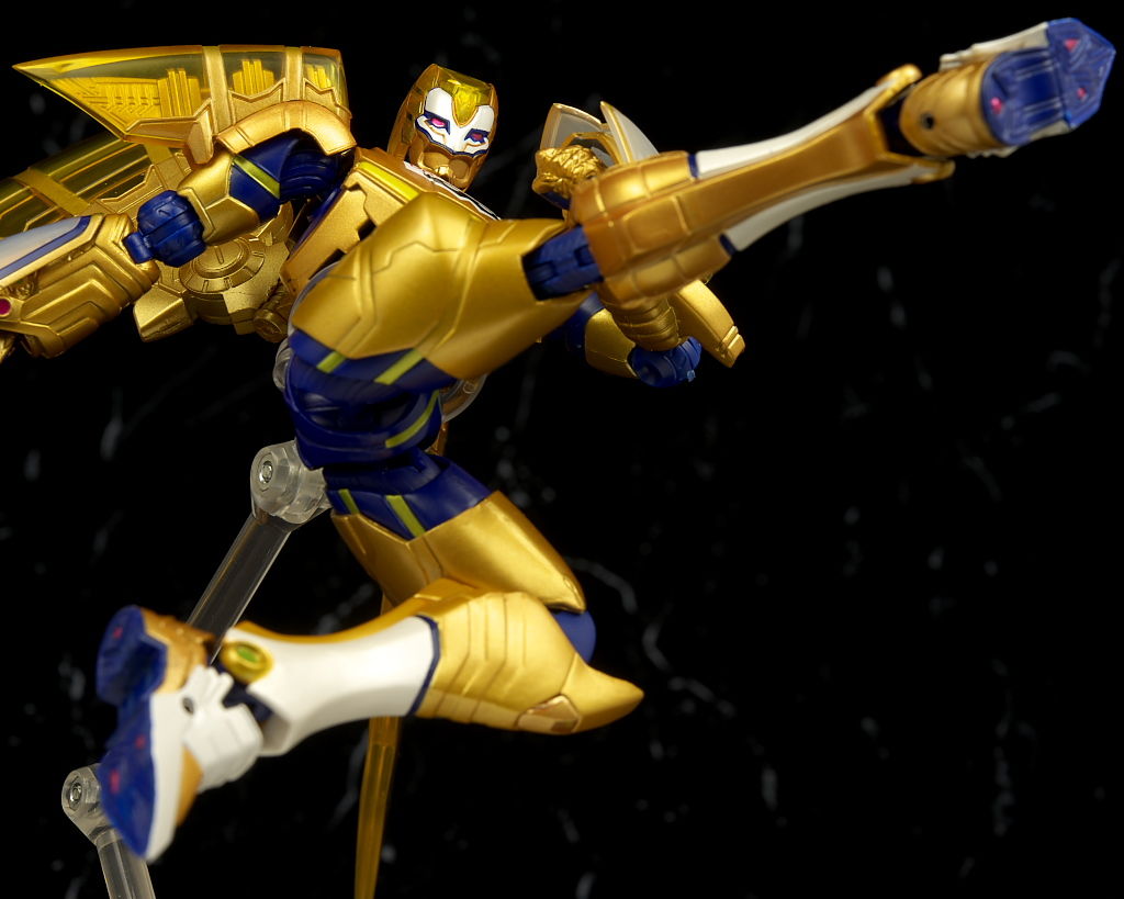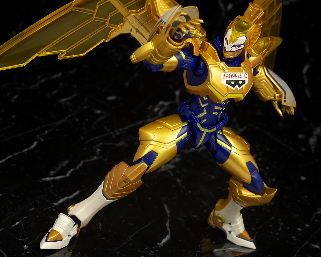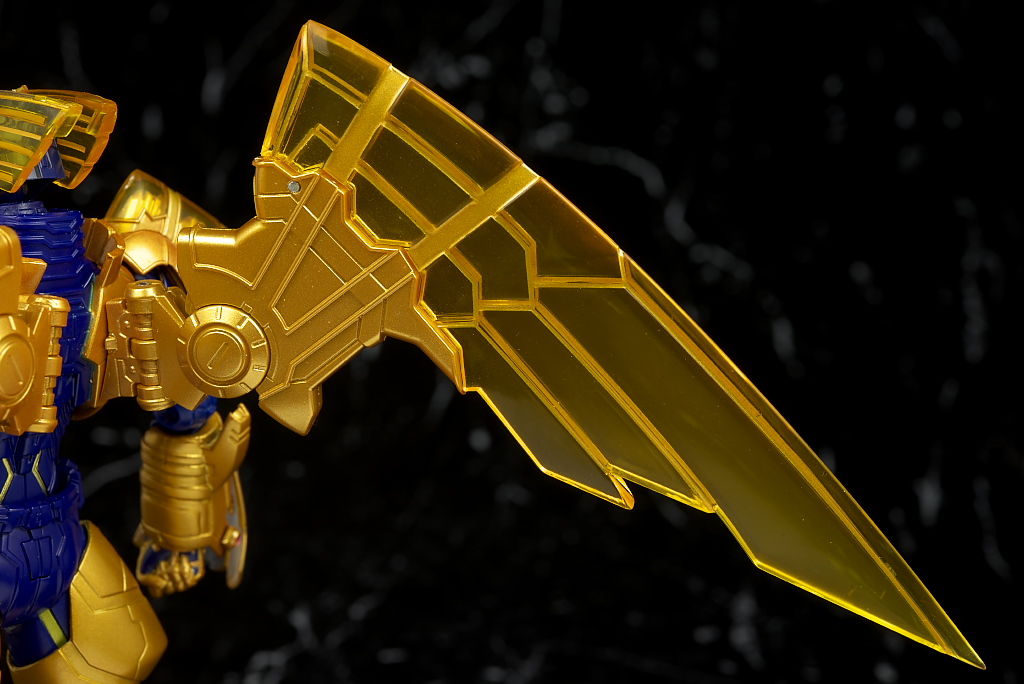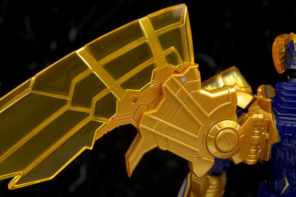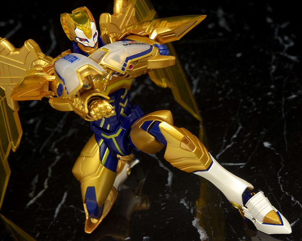 腹部の塗装がちょっと雑だった点だけ惜しかったものの他は金の色合いなど劇中のイメージ通りでプロポーションなどもそのまま、クリアのウイングや各部のメカディテールなども細かく非常に格好良かったです。