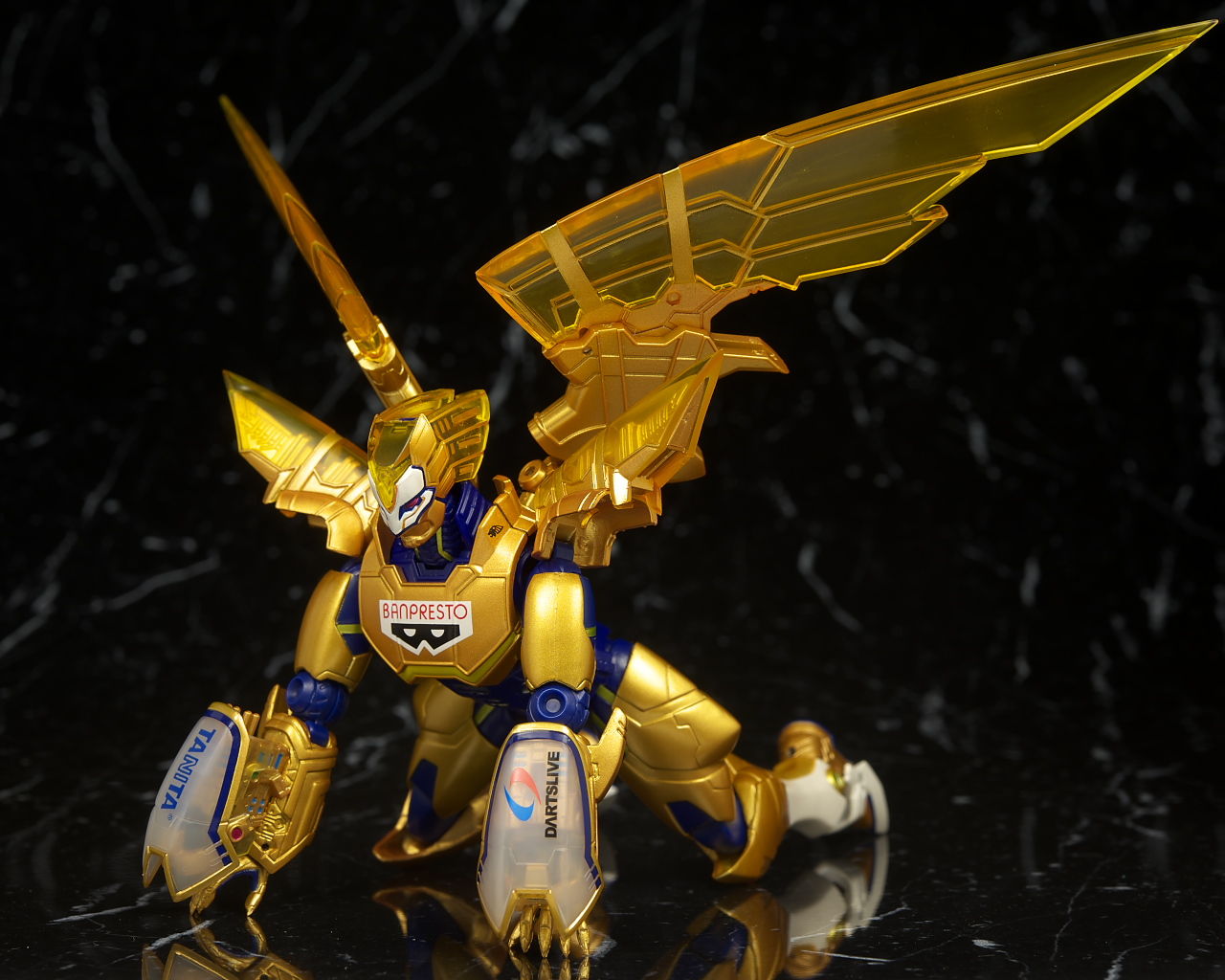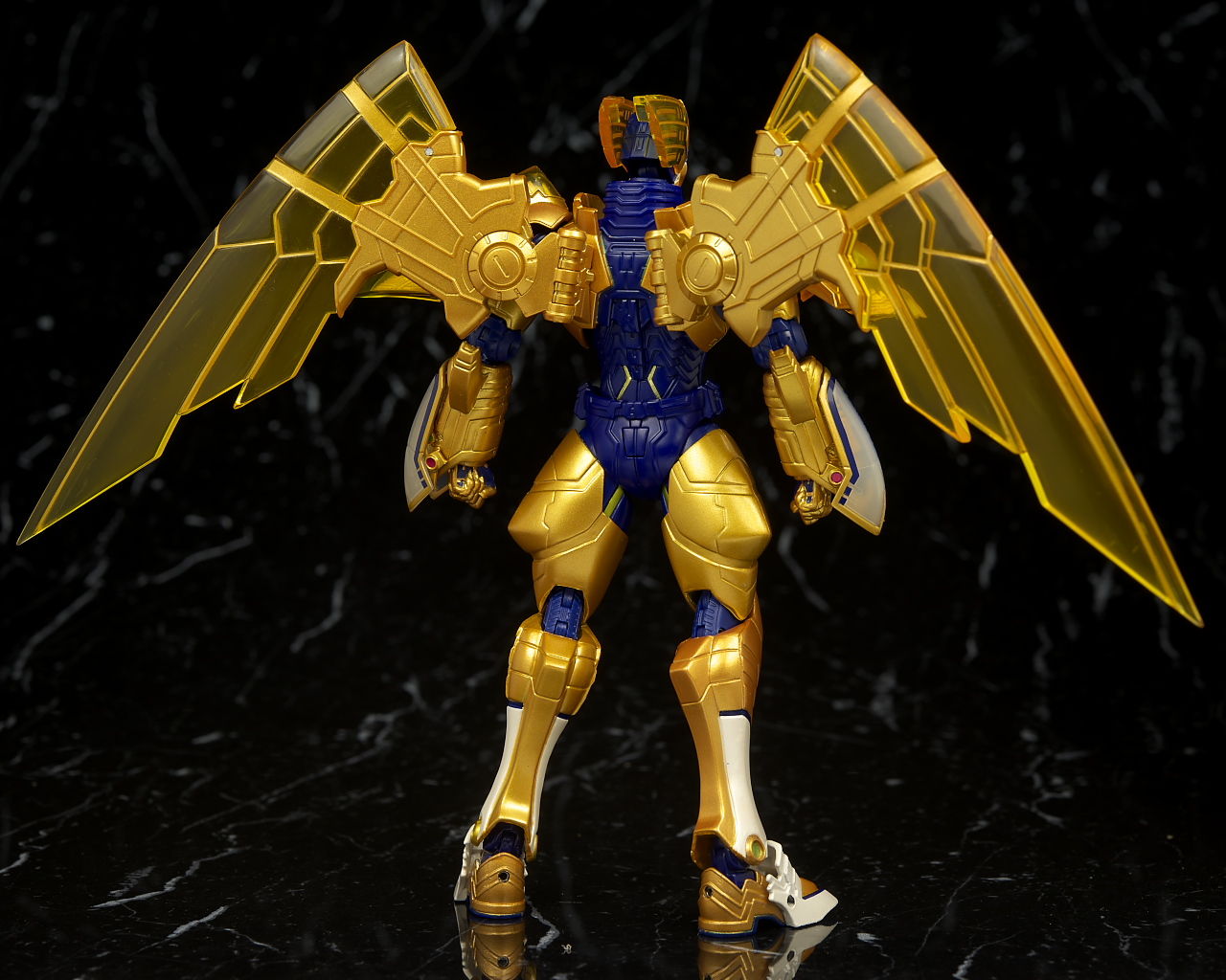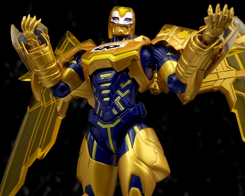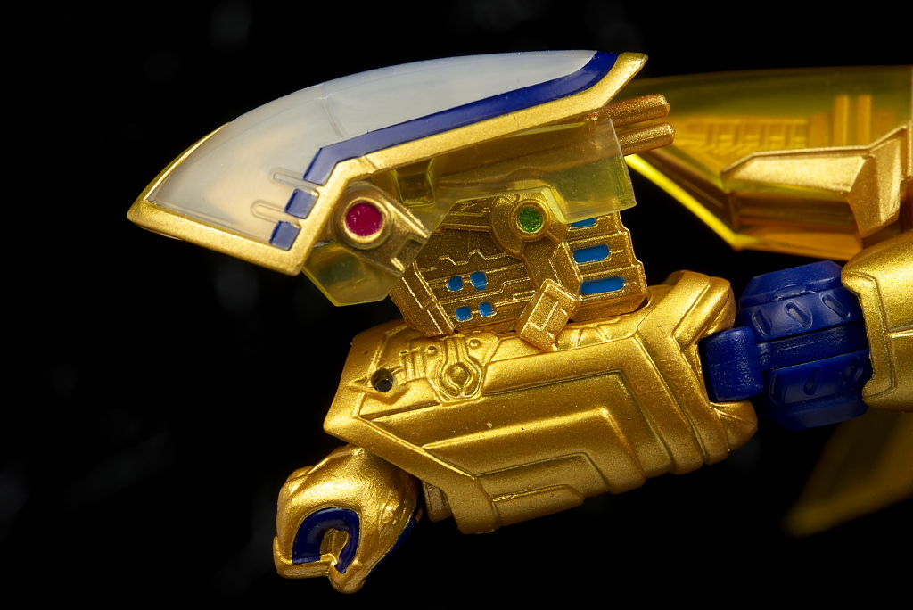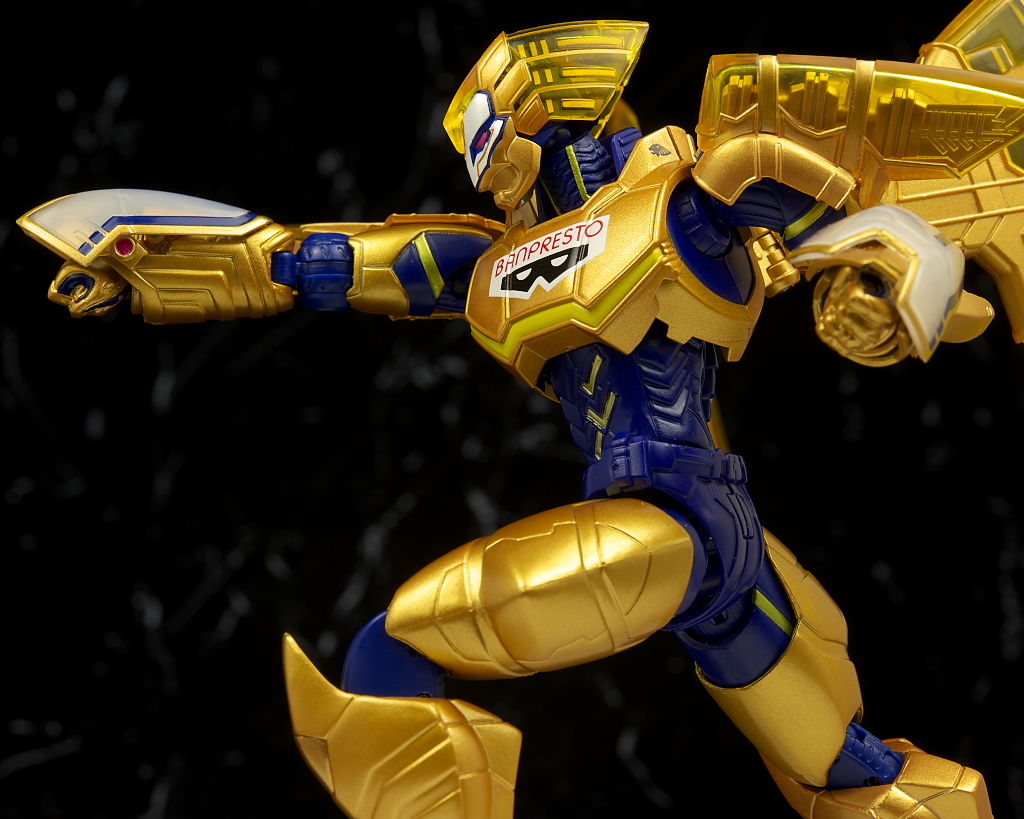 腹部の塗装がちょっと雑だった点だけ惜しかったものの他は金の色合いなど劇中のイメージ通りでプロポーションなどもそのまま、クリアのウイングや各部のメカディテールなども細かく非常に格好良かったです。