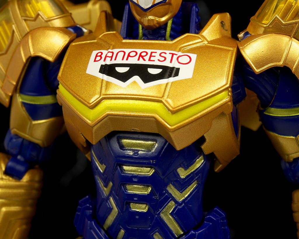 各部位など。胸板の厚いごつめなプロポーションもきっちり再現。胸にはバンプレストのスポンサーロゴ。