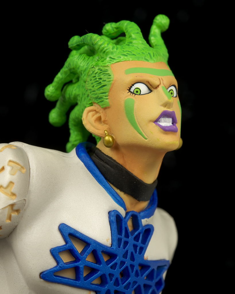 顔のペイントが少しずれてた点だけ惜しかったですがチョコラータの狂気性が忠実に再現された表情で複雑な髪型や衣装の造形も細部まで凝っており非常に完成度の高い仕上がりになってました。