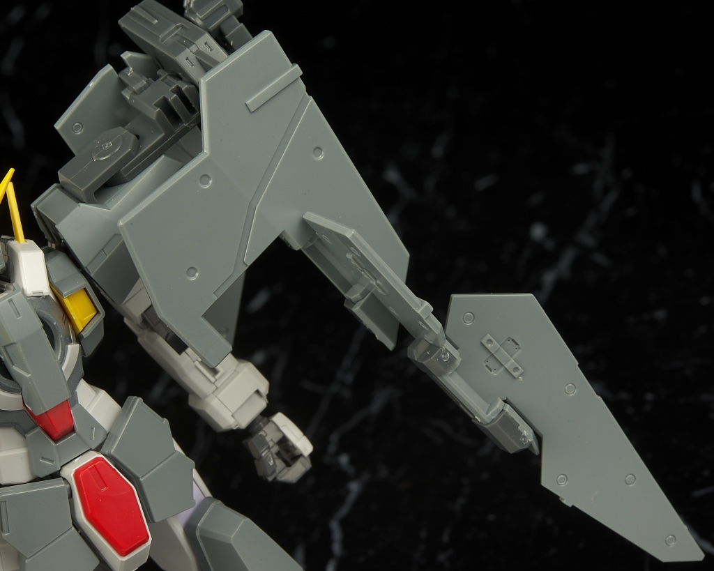 背中。腰のスラスターはなくなりアーム用のジョイントパーツに。