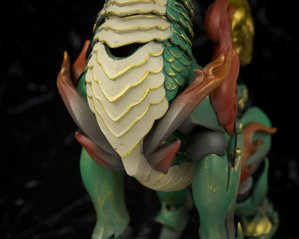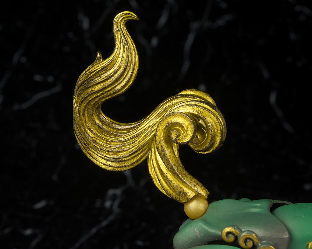 足の付根にはそれぞれ炎が。鱗にも適度に金塗装が施されてるなど手の込んだ仕上がり。