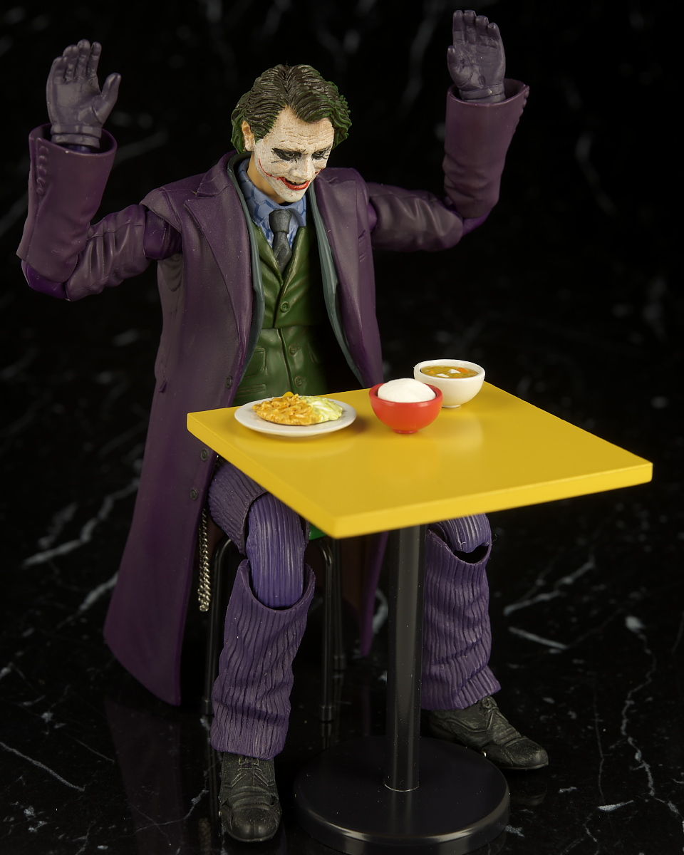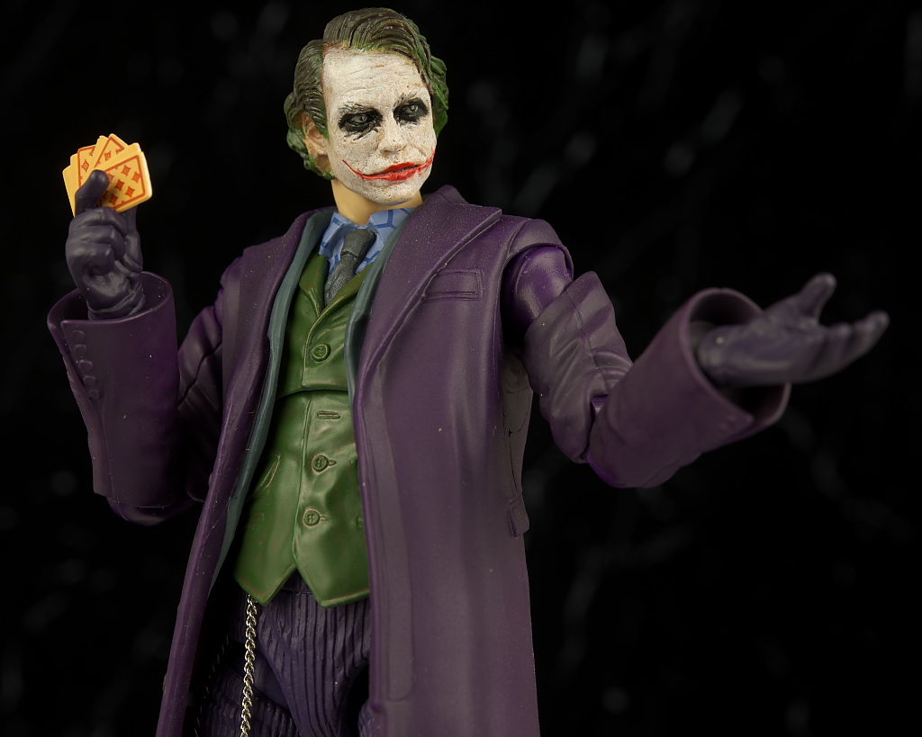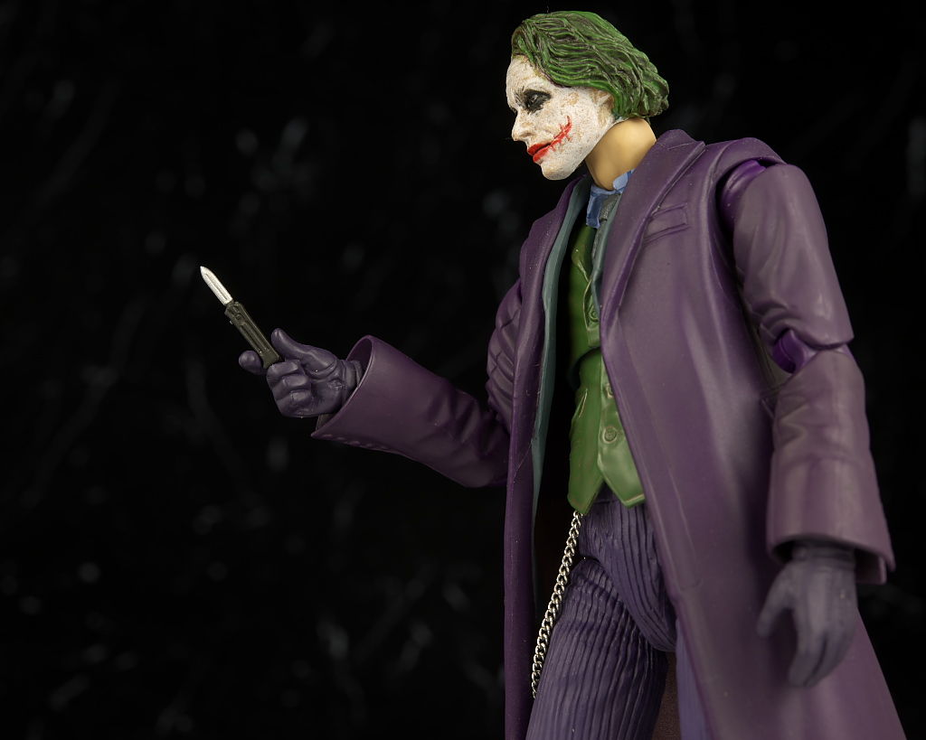 バットマンと同じくこのサイズでは珍しい実写映画からの立体化ですが、化粧の落ち具合など顔もかなりこだわった作りになっており、衣装もほとんど省略もなくわりと安めな値段なのに武器も大量で思ってた以上に満足度の高い内容になってました。