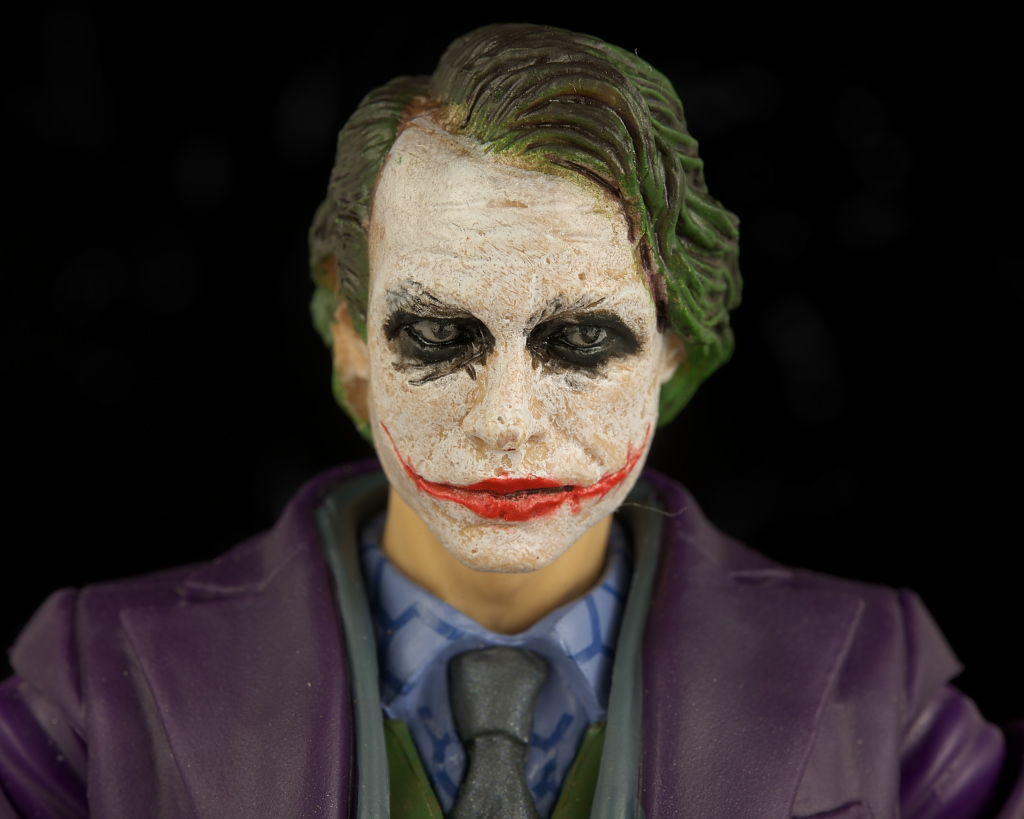 ジョーカーらしい表情ですが再現度は通常顔より劣る印象。もうちょい目を細めて大口開けた方が良かったような。
