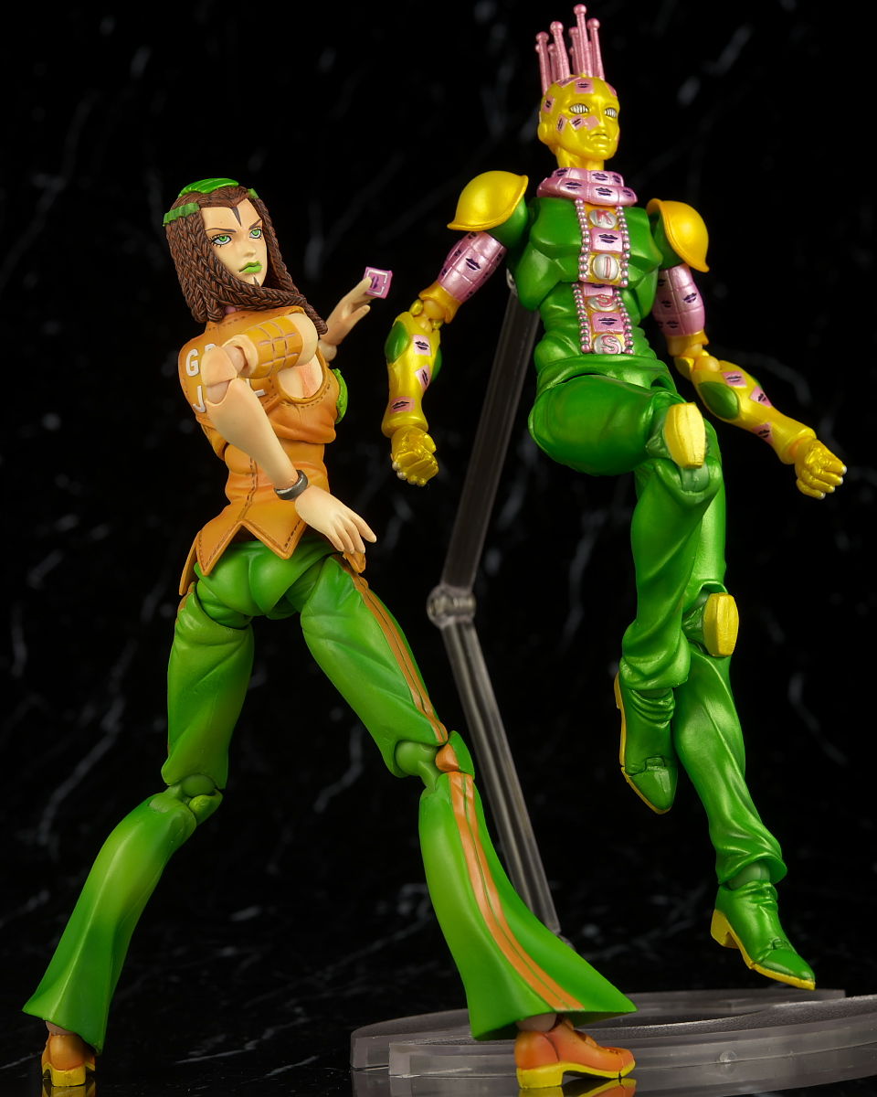 可動も衣装のデザイン的に足だけあまり上がらないという制限はありましたが他は問題なく、オプションもマニアックな小物が色々付いてたり先に出ているスタンドと組み合わせての遊びも出来るのでプレイバリューも申し分なかったです。
