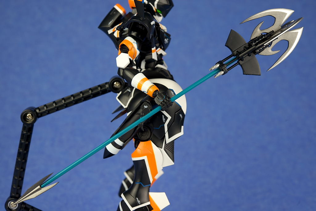 腕や足。関節なども目立たない作りに。肩アーマー前後の小羽は軸可動、太腿横のパーツはボールジョイント可動。