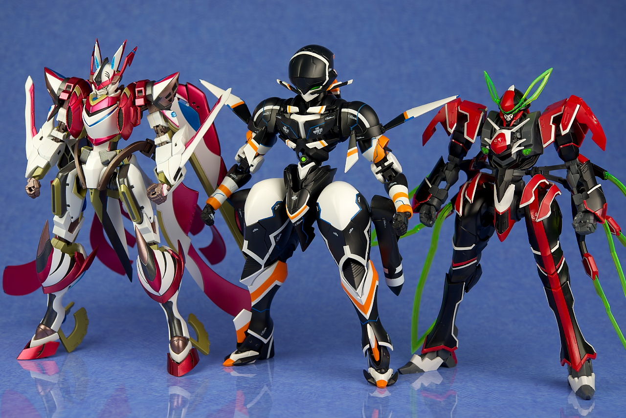 スケールはバラバラですが同時期にやってたマジェプリ、ヴヴヴの主役機と。値段が値段なので流石に完成度はダントツ。