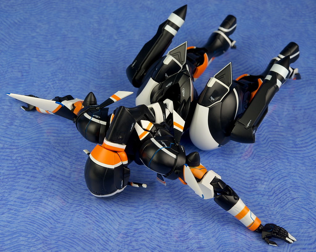 飛行。全体的に可動範囲もかなり広いですがほぼ全塗装仕様なので動かす時は注意が必要。