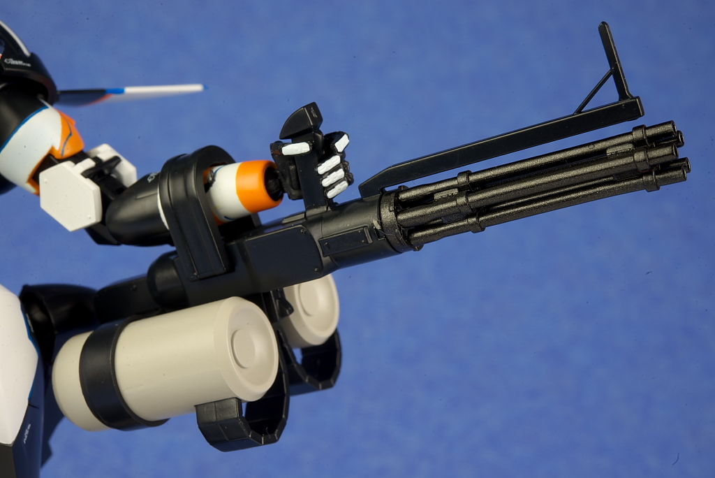 ガトリング。手首の交換もスムーズながら重い武器を持たせても外れることもなく遊びやすかったです。
