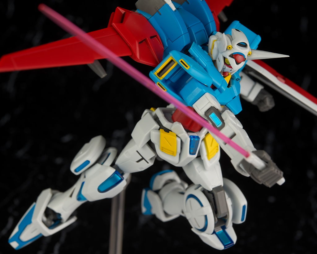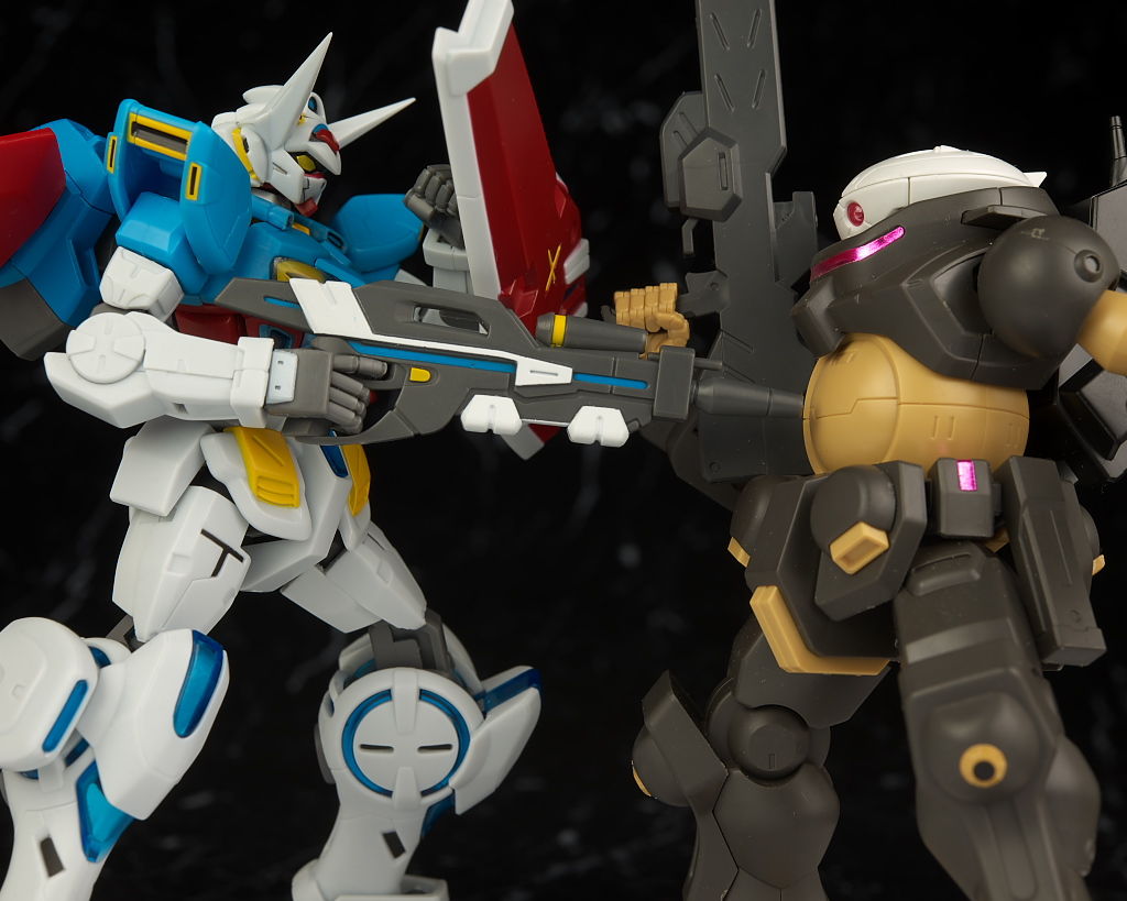 可動も頭が上を向きにくい点だけ惜しかったですが後発なだけあって股関節周りや肘膝の曲がり具合などHGより優秀で遊びやすくかなり完成度の高い出来になってると思います。