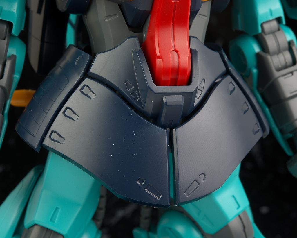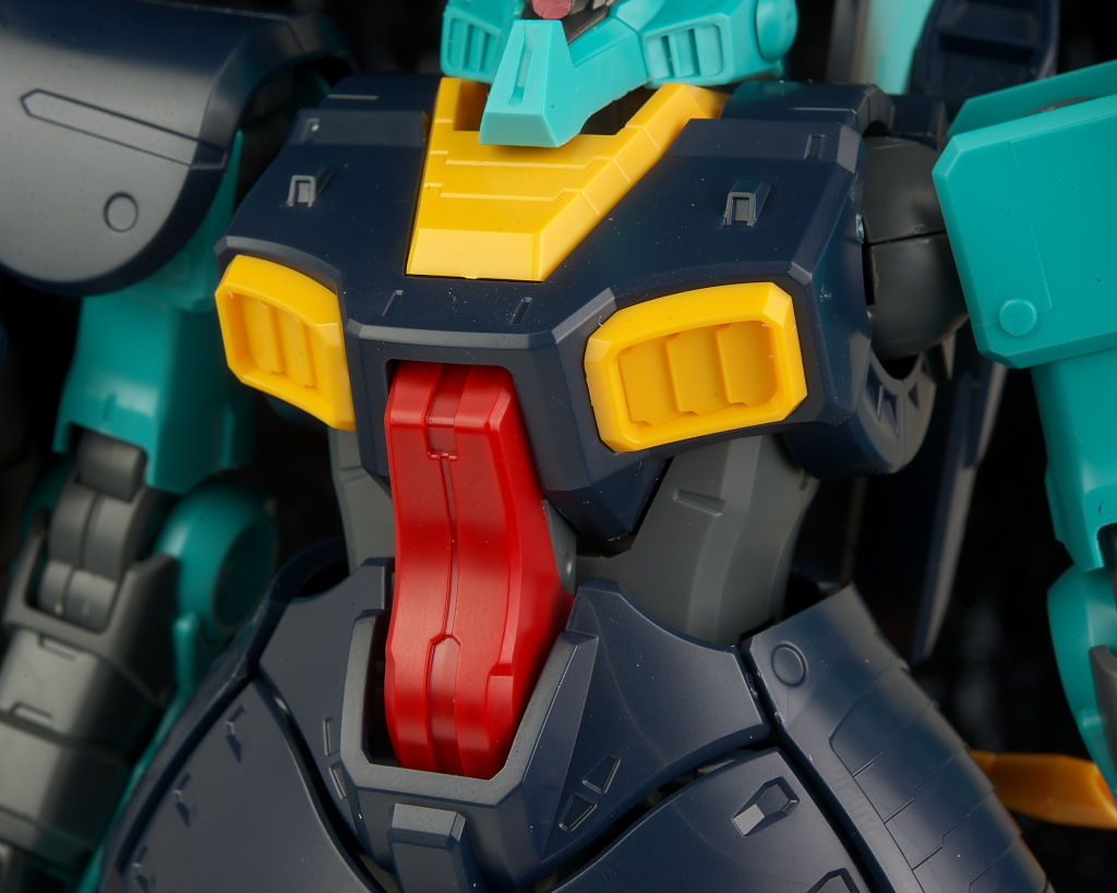 各部位など。襟元、ダクトの黄色や腹部の赤など全て色分け。腹部の赤いパーツで胸と腰が繋がってるのが特徴。