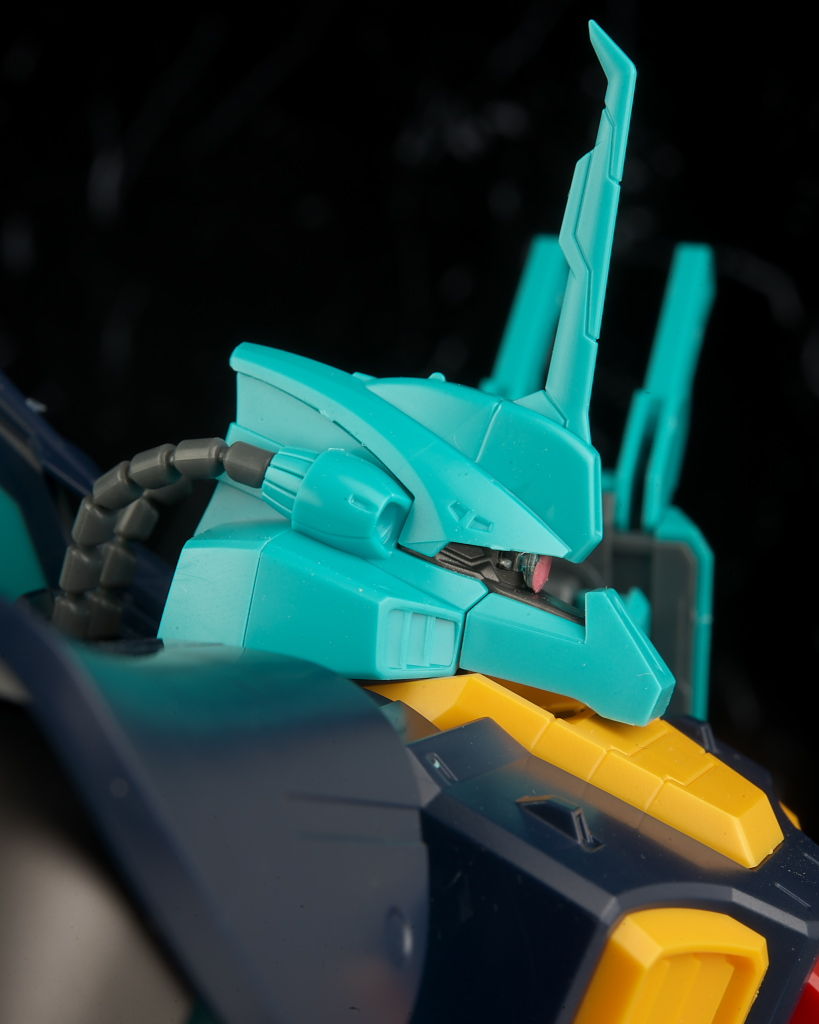 顔。リックディアスがベースになってるということでモノアイタイプ。モノアイカバーにはツインカメラ用ソケットのモールドも。