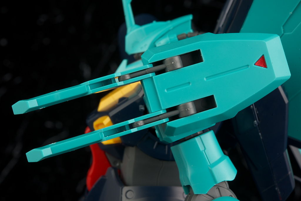 左肩のウェポンラックは基部が回転する他ツメの部分も可動。