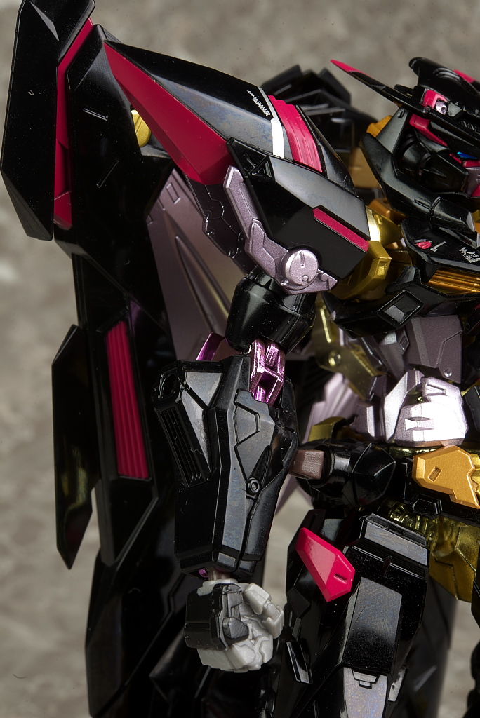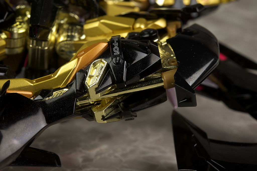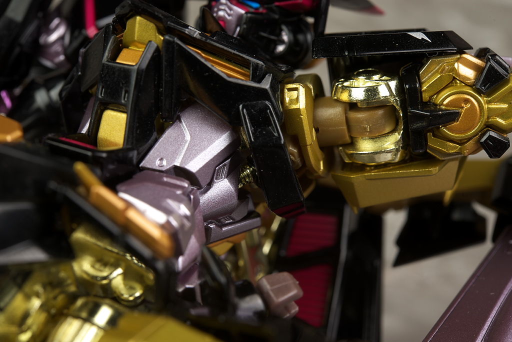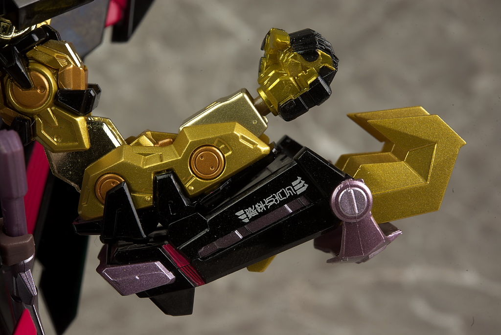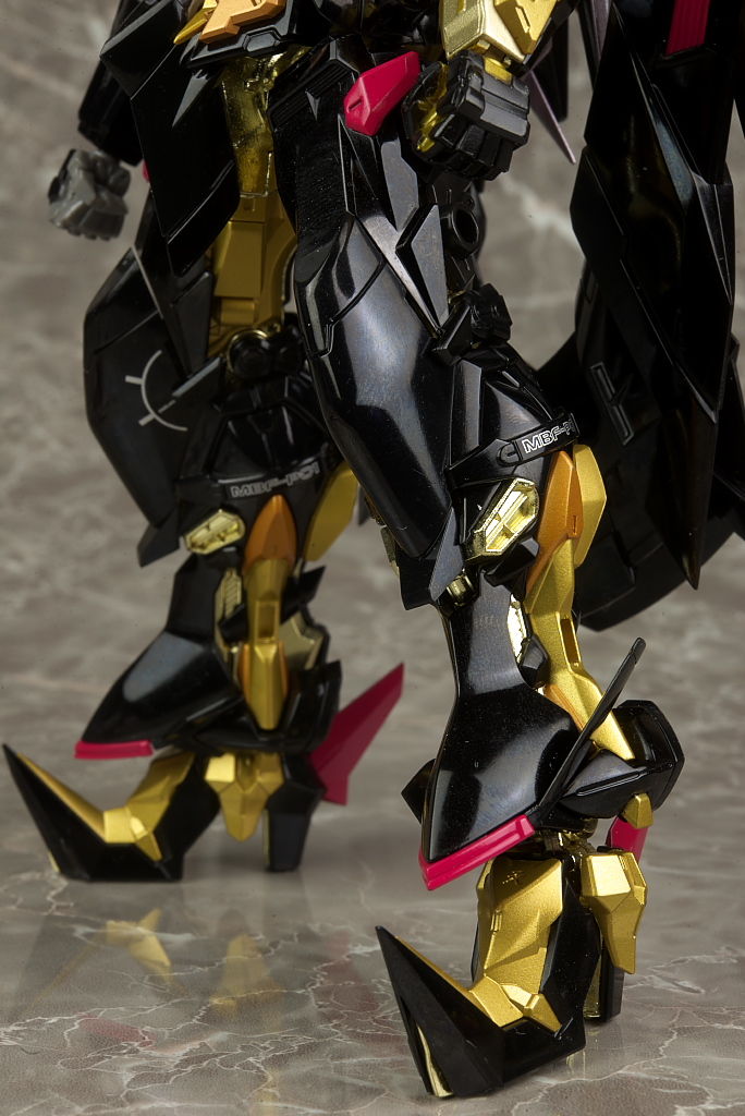 腕や足。右腕はブリッツの物なので金部分はなく関節も紫に。脚部は膝周りなどやや太めで力強い印象。