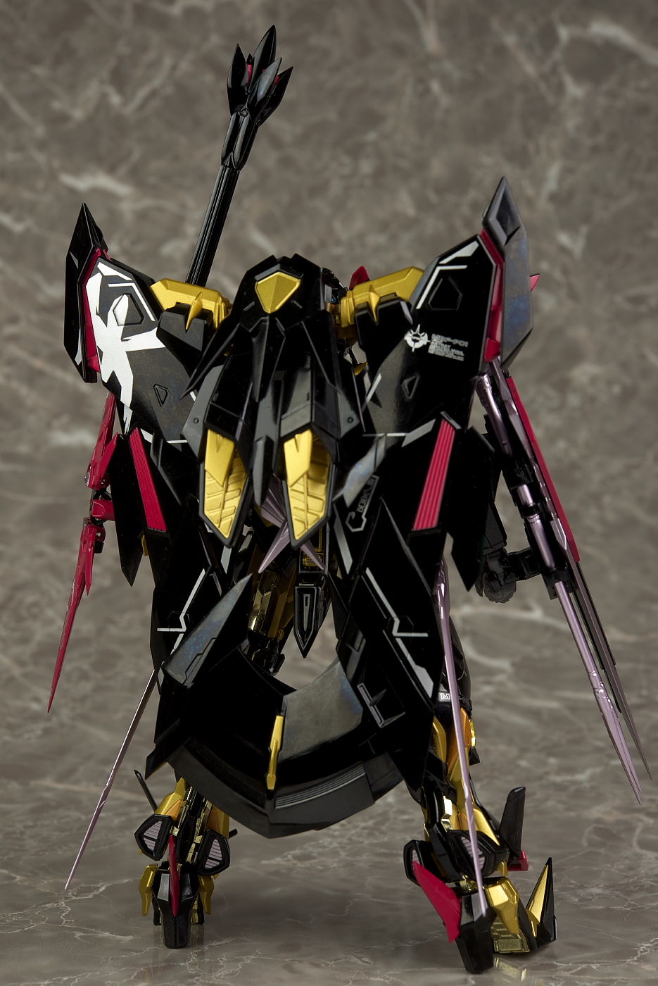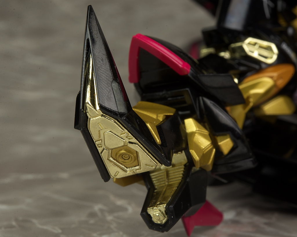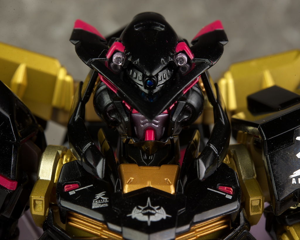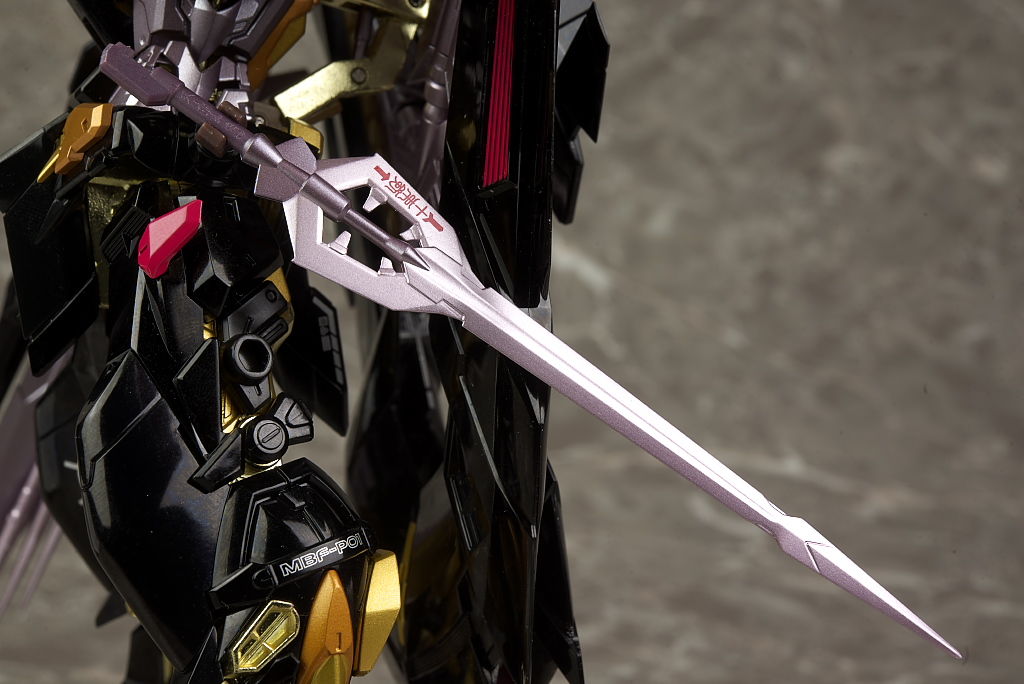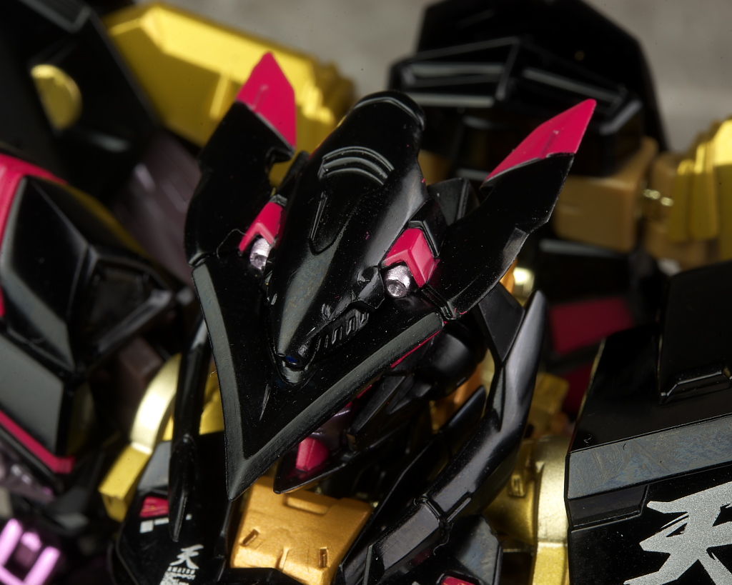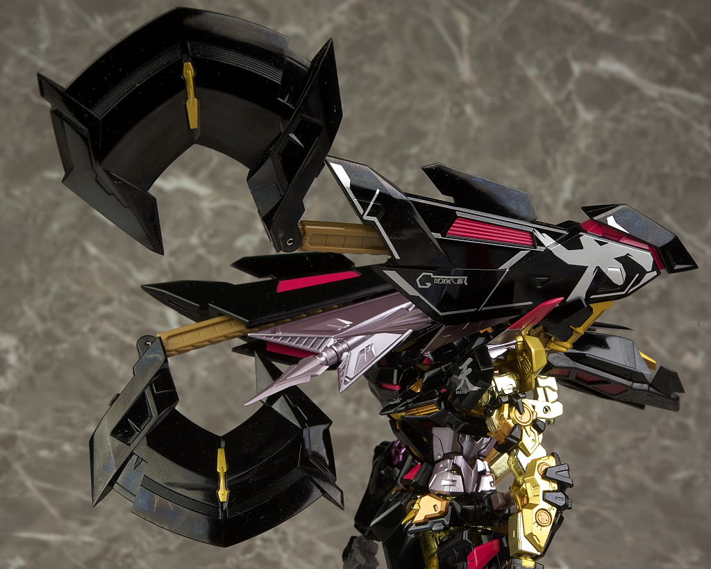 装備。光沢強めな黒と一部がメッキのフレームの金が非常に派手。プロポーションは特にアレンジはなく自然なバランス。