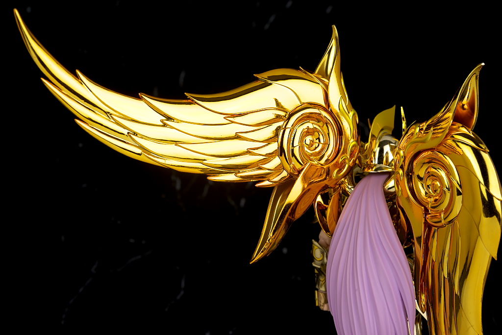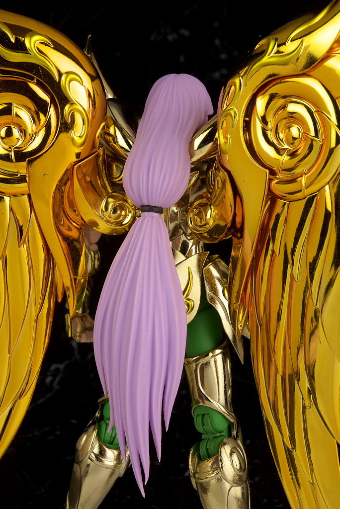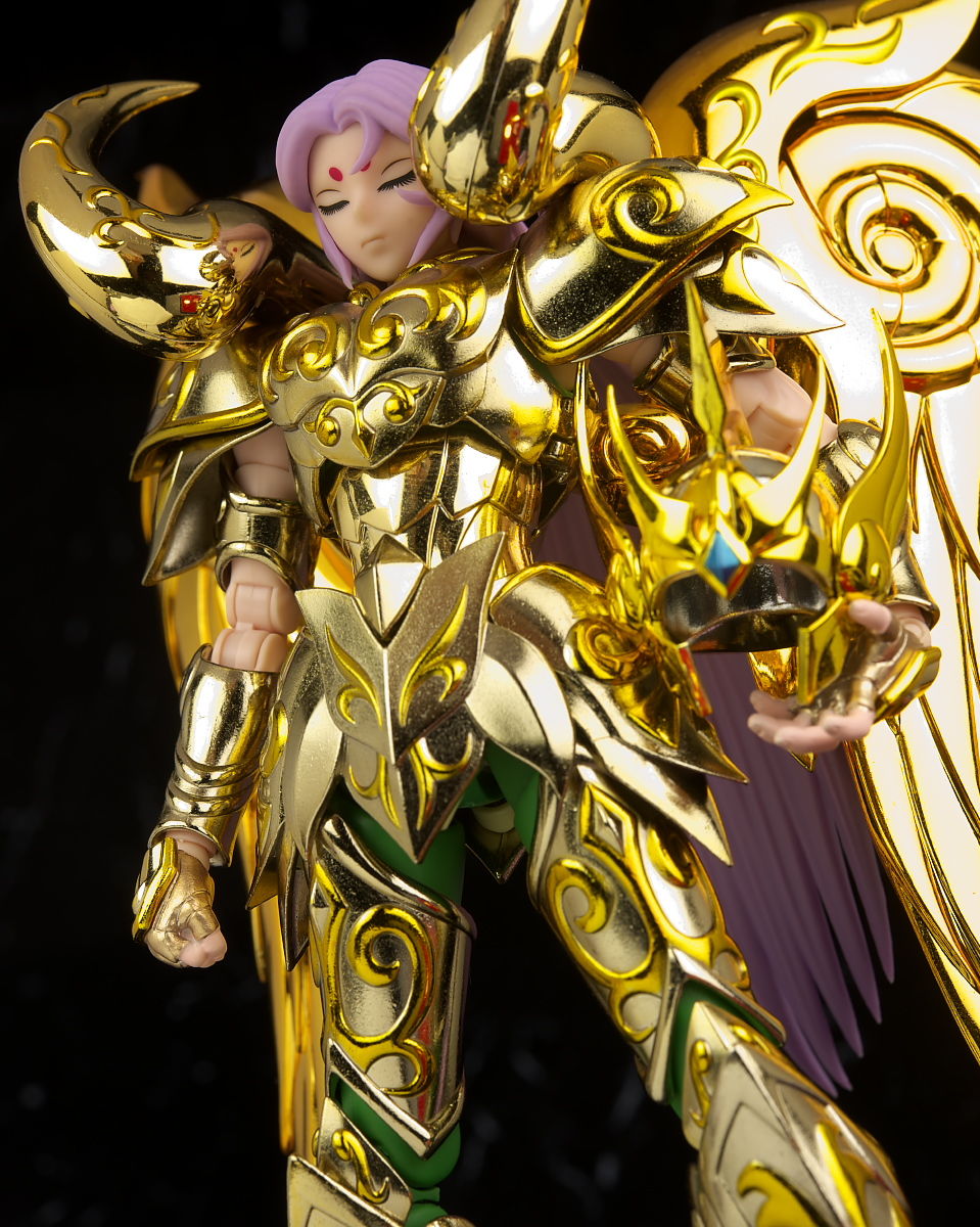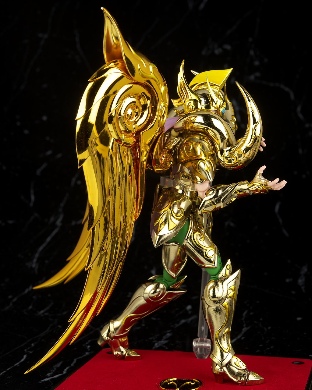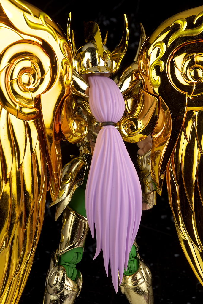 デザイン的に翼の形が少し重々しい感じがあるのでアイオリアの時ほどの感動はなかったですが、全体のボリューム感や2色の金色でよりメリハリのついた聖衣など独自の魅力があり表情パーツも改善されてて実物は見本でのイメージよりかなり格好良く仕上がってました。