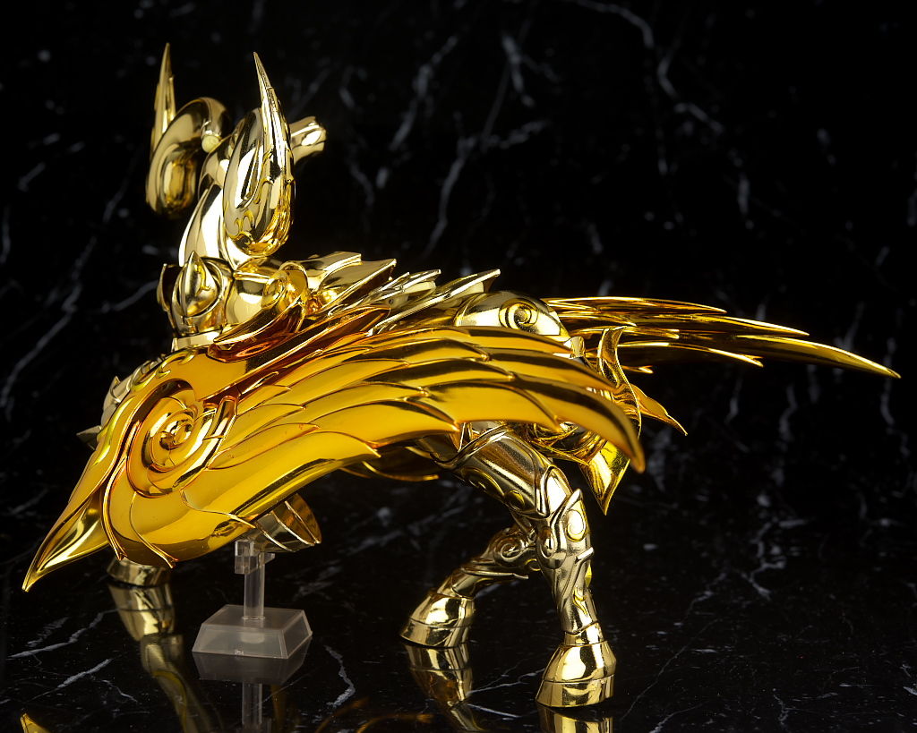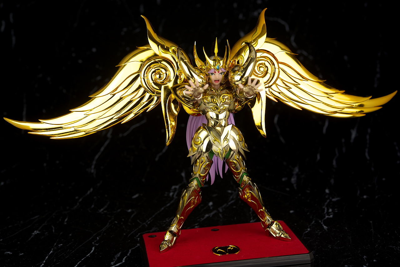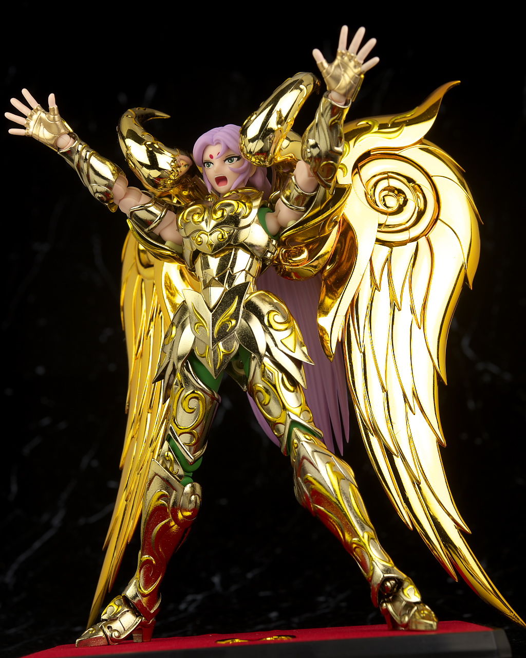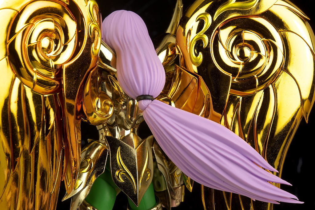 デザイン的に翼の形が少し重々しい感じがあるのでアイオリアの時ほどの感動はなかったですが、全体のボリューム感や2色の金色でよりメリハリのついた聖衣など独自の魅力があり表情パーツも改善されてて実物は見本でのイメージよりかなり格好良く仕上がってました。