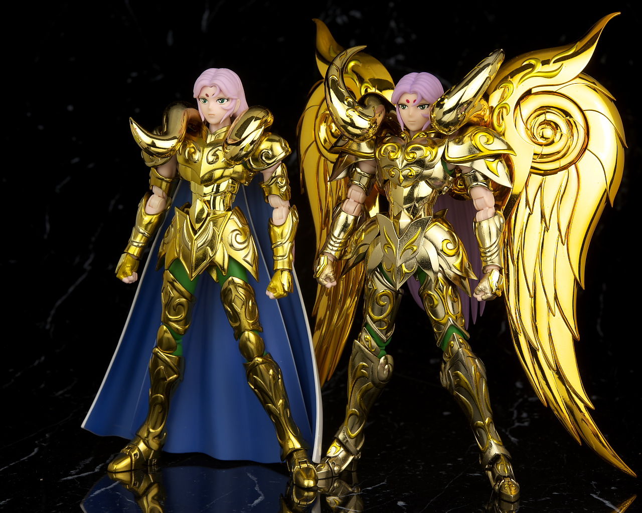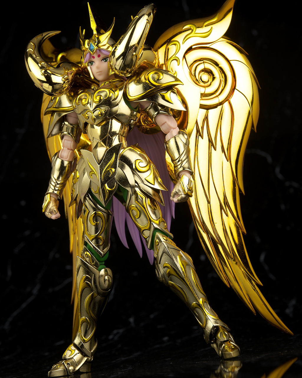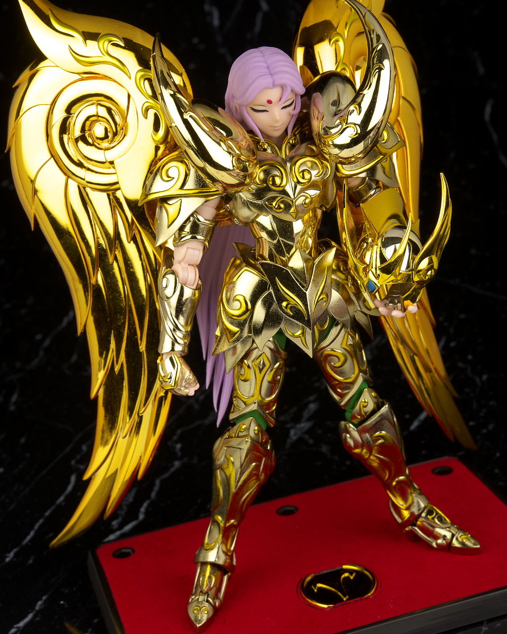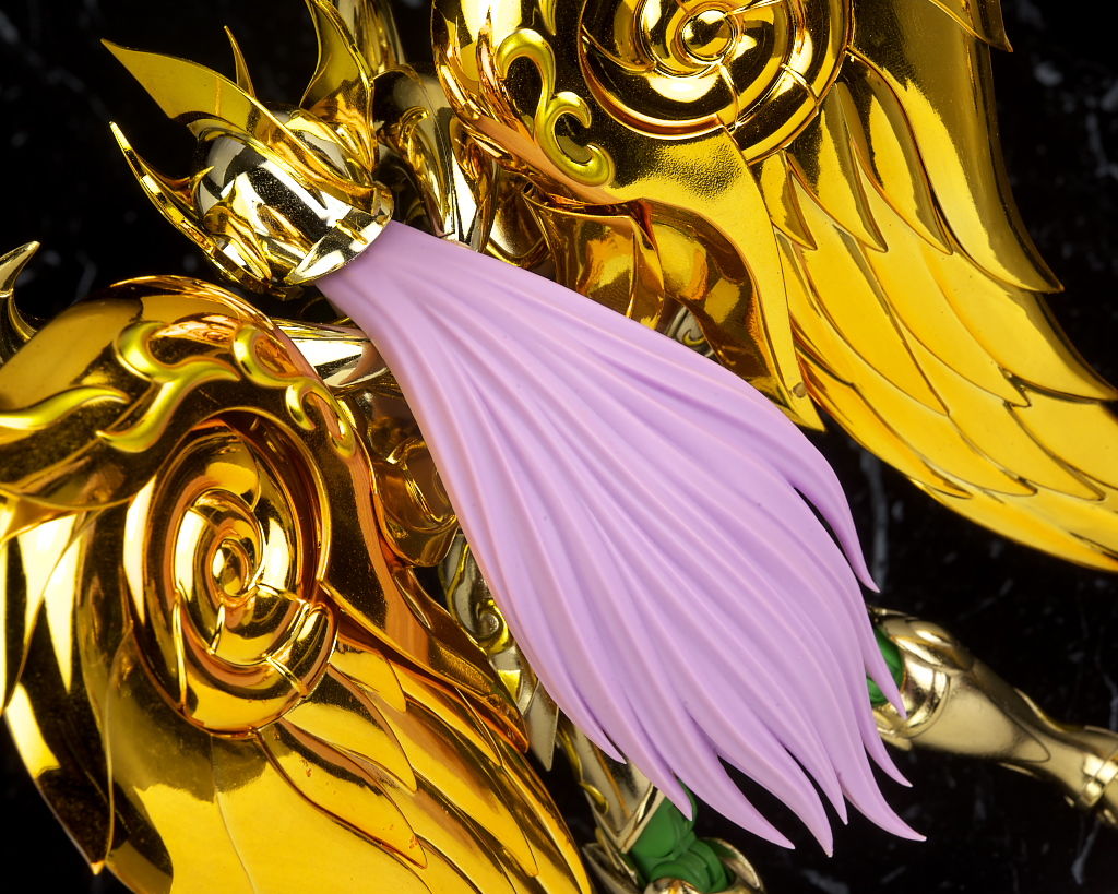 デザイン的に翼の形が少し重々しい感じがあるのでアイオリアの時ほどの感動はなかったですが、全体のボリューム感や2色の金色でよりメリハリのついた聖衣など独自の魅力があり表情パーツも改善されてて実物は見本でのイメージよりかなり格好良く仕上がってました。