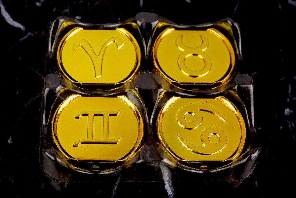初回特典の黄道十二星座シンボルプレート4種(メッキ仕様)。今回はプレートのみ。