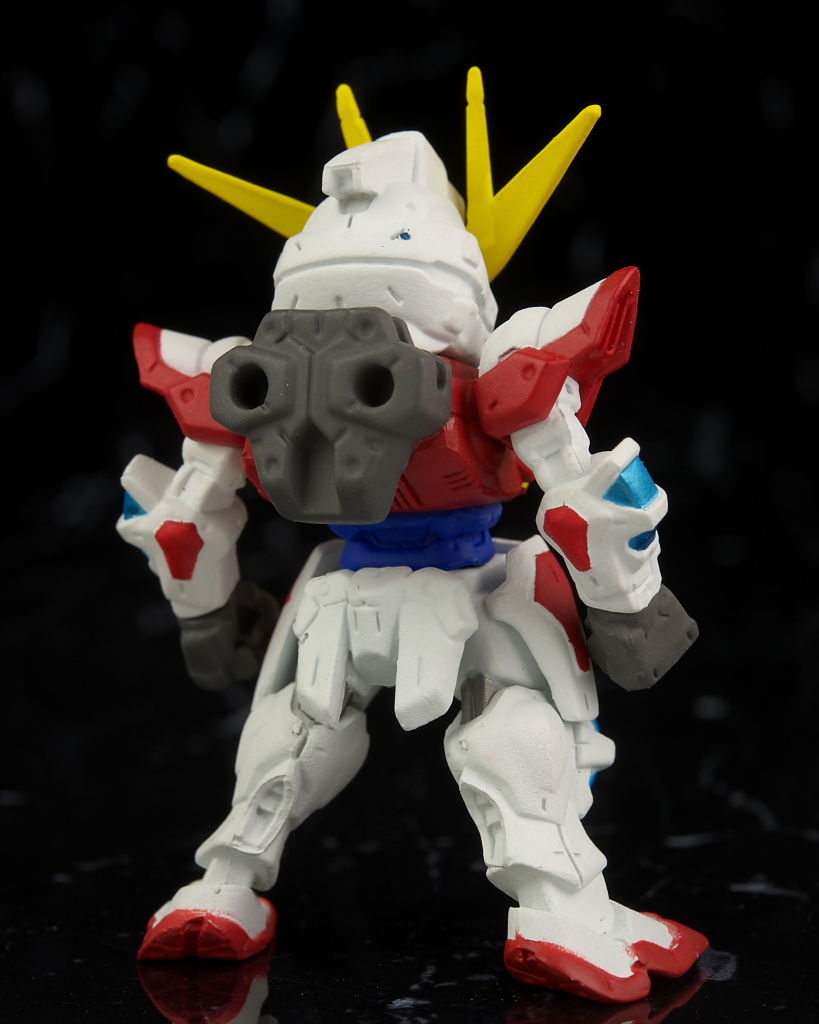 背中には穴がありHGやBBビルドバーニングのエフェクトを取り付け可。ただBBは片側の穴に重ねるように付けるしかなし。