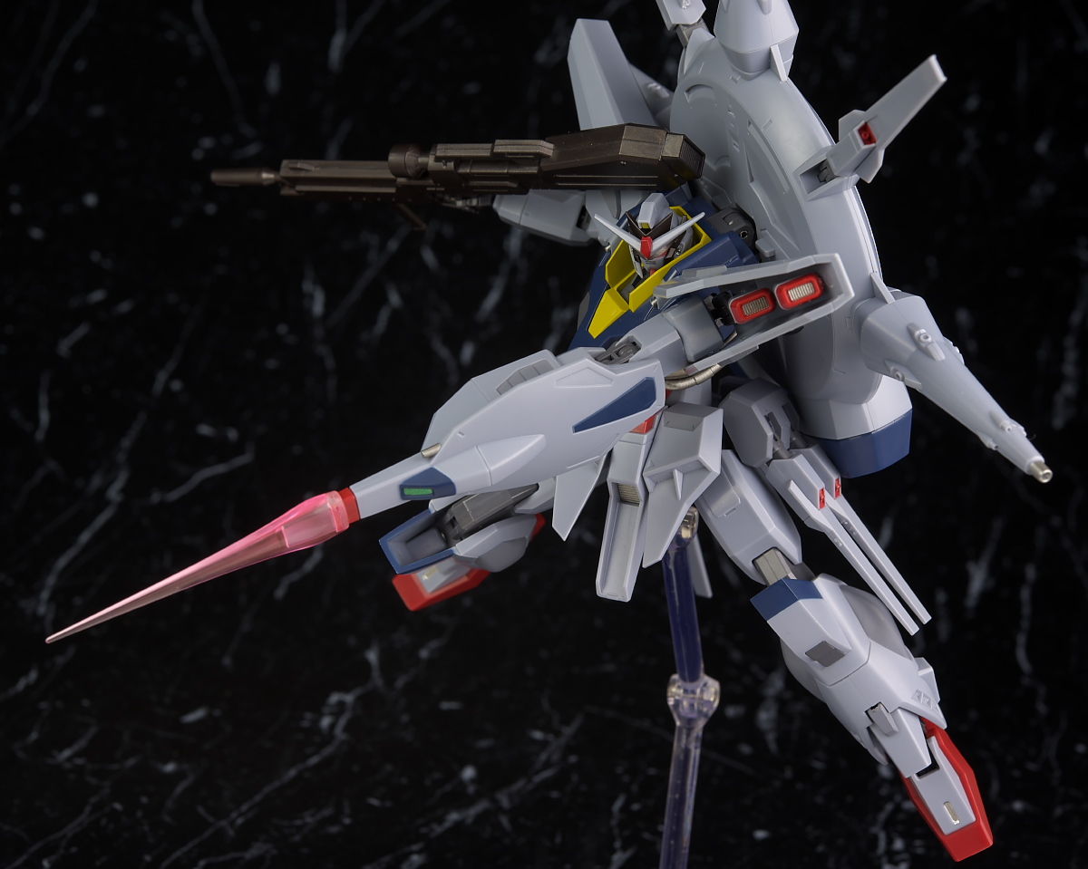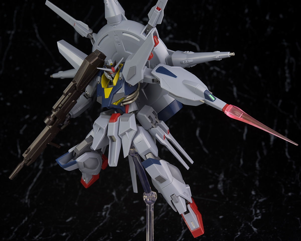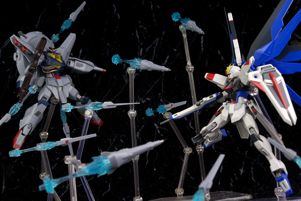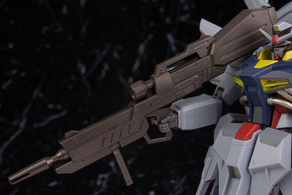 可動も関節がフリーダム、ジャスティスと共通なので見た目のわりによく動き、バックパックのアーム、ライフルのグリップ可動など細かい配慮が行き届いておりエフェクト類も豊富でプレイバリューも十分でした。