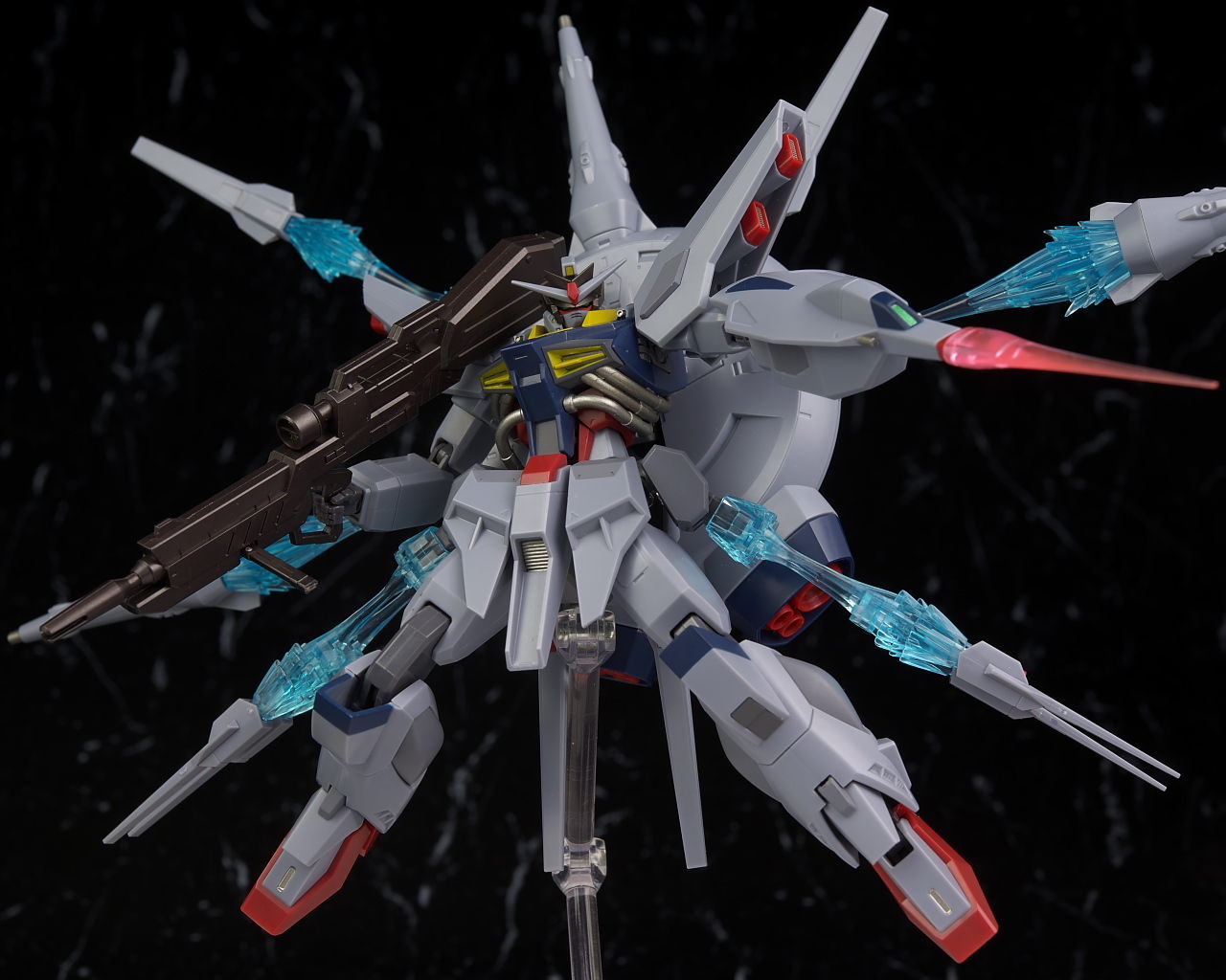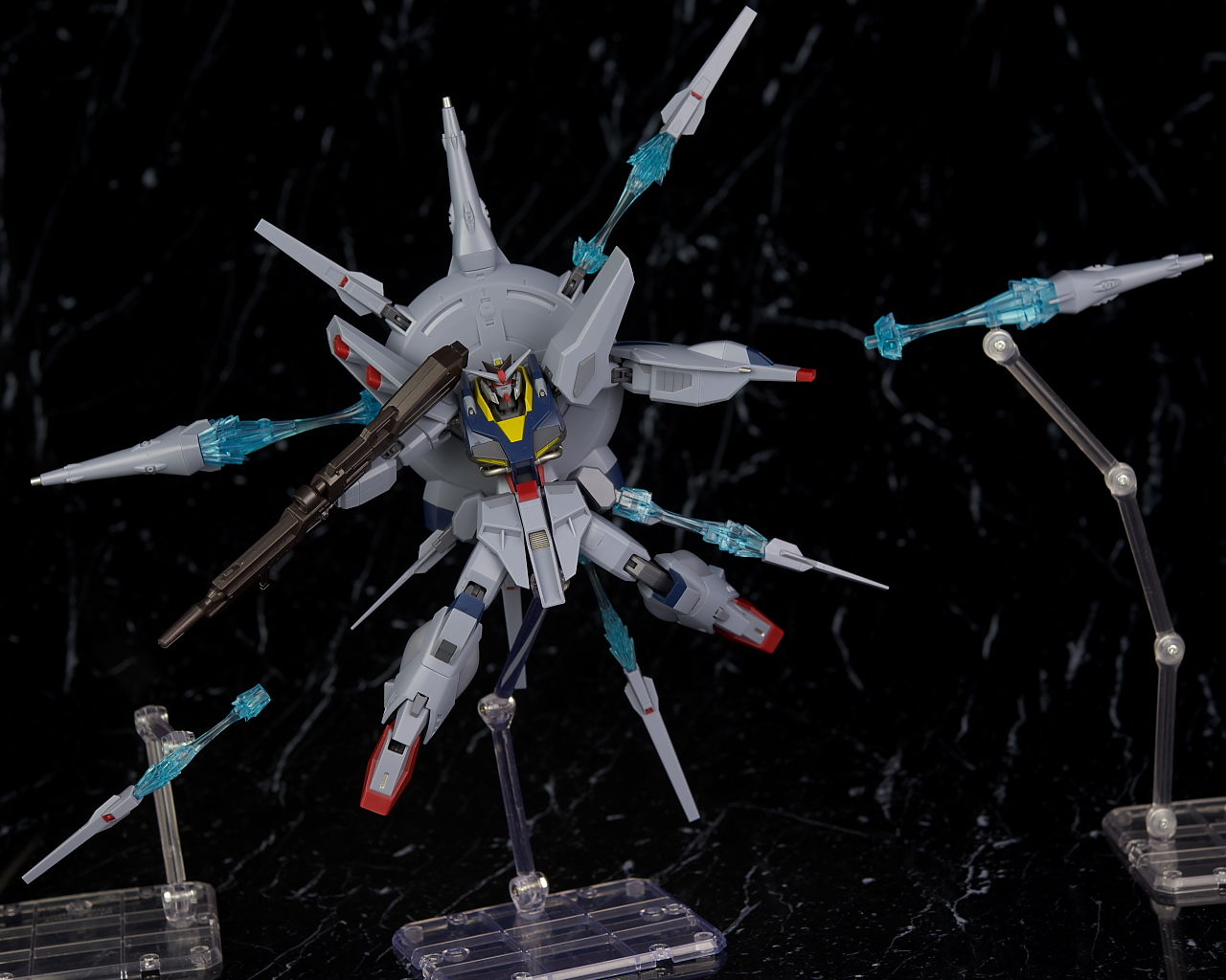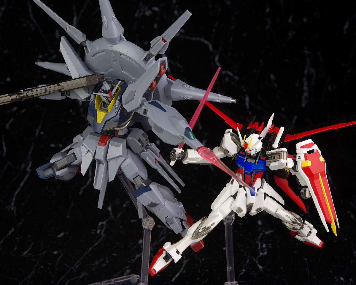 可動も関節がフリーダム、ジャスティスと共通なので見た目のわりによく動き、バックパックのアーム、ライフルのグリップ可動など細かい配慮が行き届いておりエフェクト類も豊富でプレイバリューも十分でした。