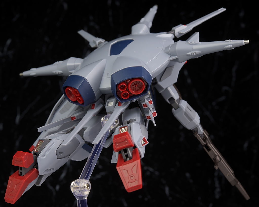 後ろから。スラスター内部の赤は単一の成型色で見栄えはそれなり。