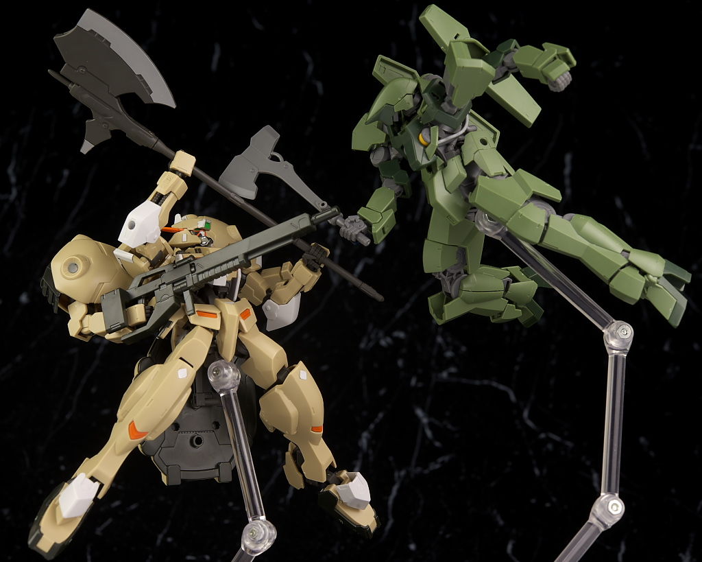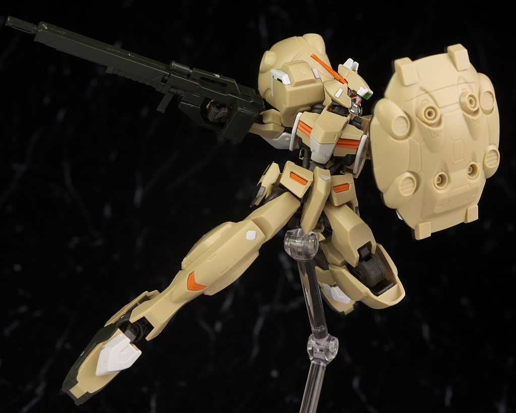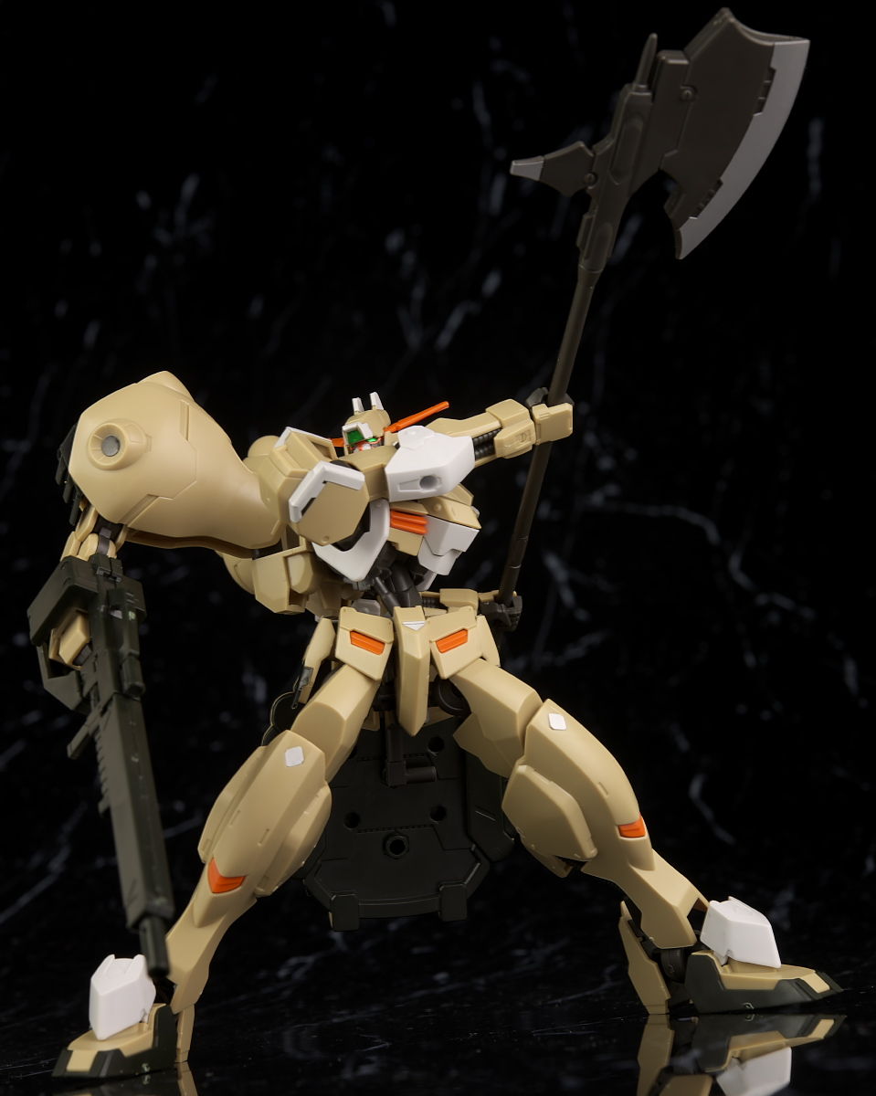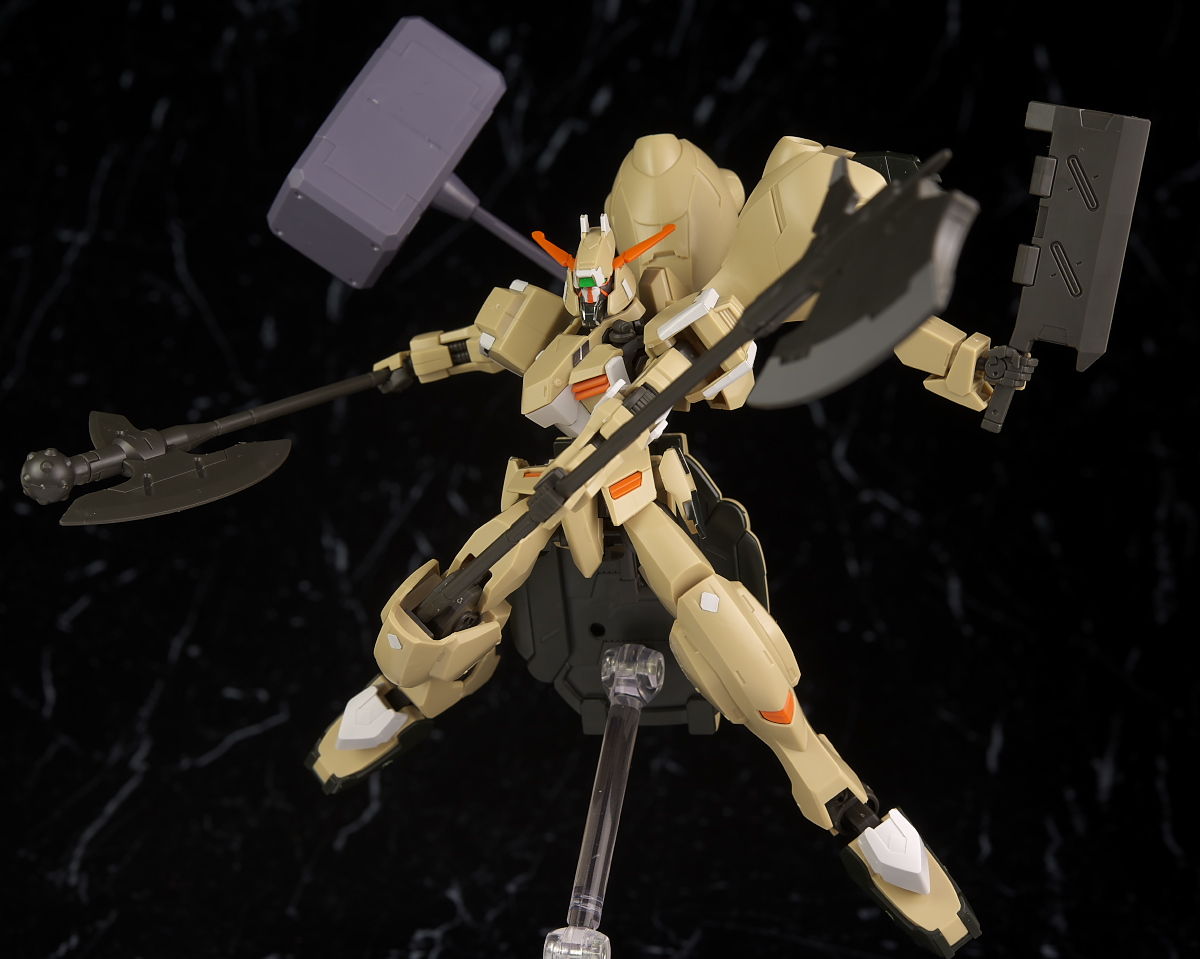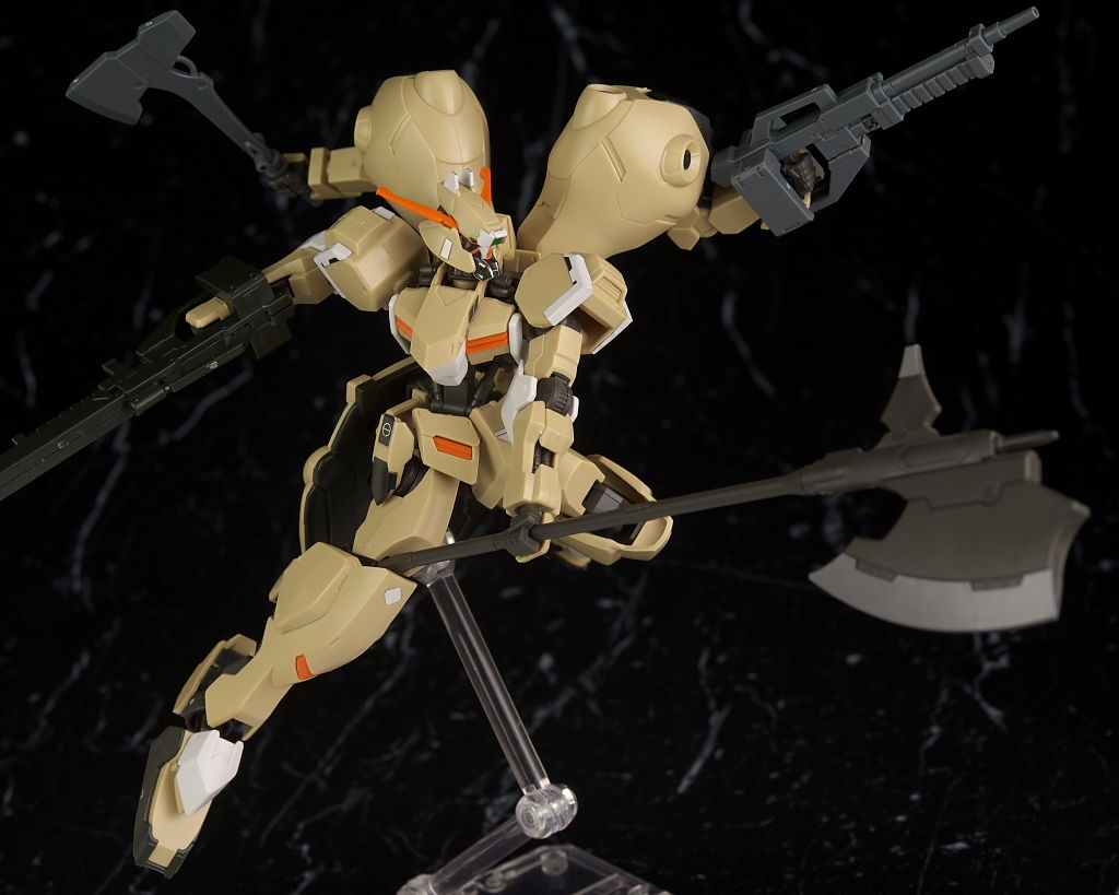 可動もフレームがほぼバルバトスと同じなのでどこも良好で頭部交換やシールドの装備、サブアームとギミック面も充実しておりプレイバリューも鉄血シリーズの中でトップクラスだと思います。