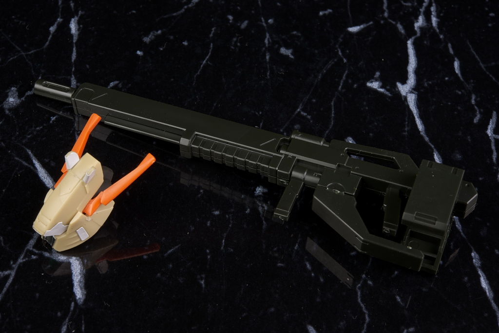 ロングレンジライフル。設定上はグレイズからの流用ですがキットではモナカ割になってフォアグリップが固定に。