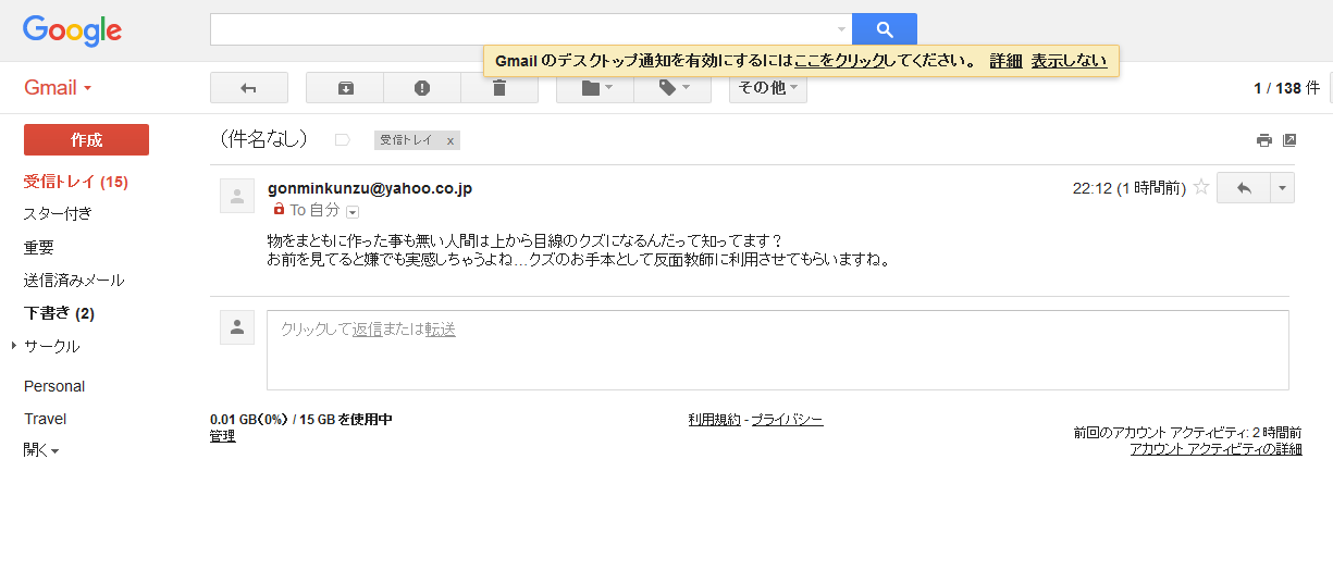 どうせ外部に出ないだろうとタカをくくって好き放題言ってるみたいだったのと毎日アドレスを変えたり常習犯っぽくあちこちでやってそうなので敢えて取り上げてみました。