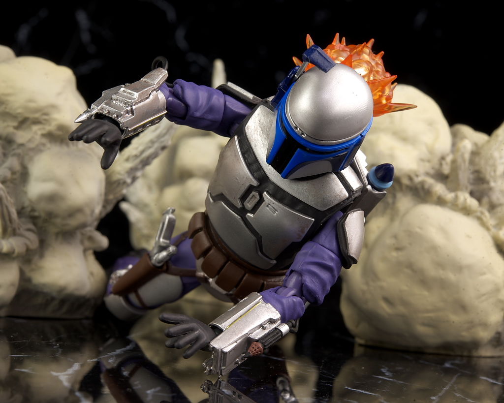 ジェット噴射のエフェクトがなかった点だけ惜しかったですが、武装は充実しており、可動もデザイン的にストームトルーパーなどより干渉が少ないので自然な膝立ちが出来るくらいよく動くのでプレイバリューも高かったです。