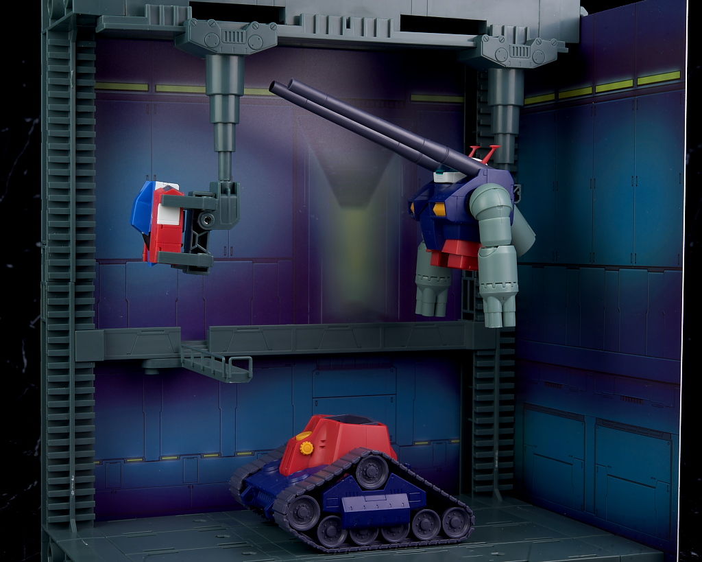 クレーンは伸ばすことが出来、コアファイター、ガンタンクを持ち上げ可能。またレールに沿って位置を変えることも可。