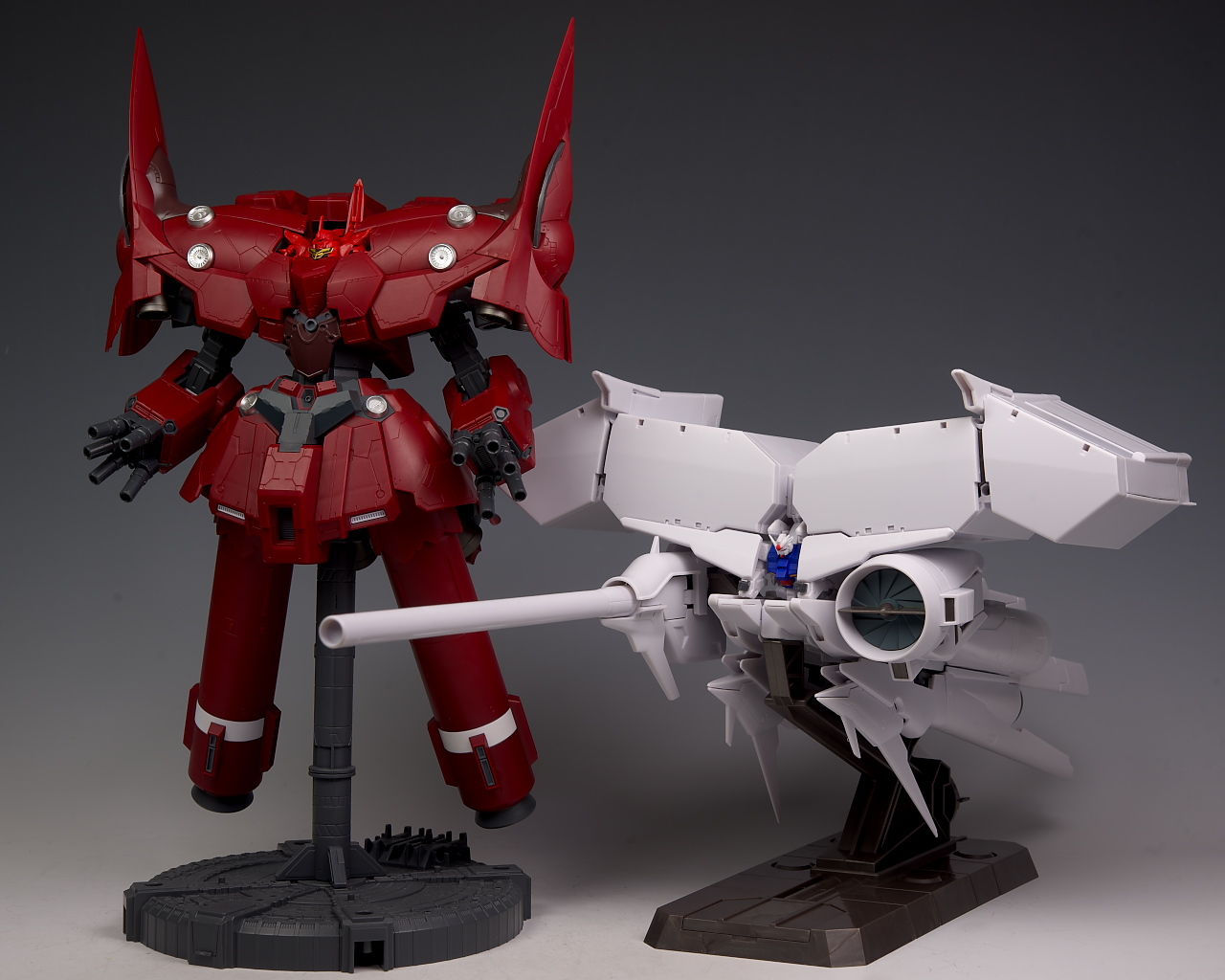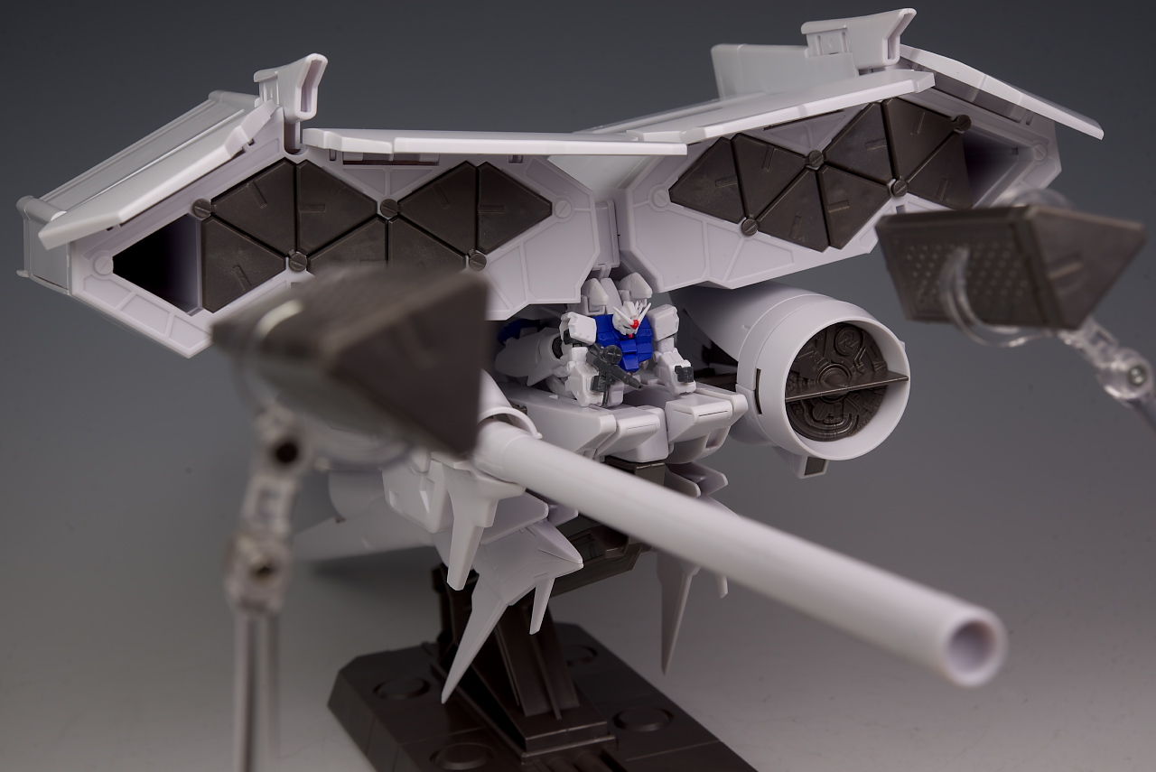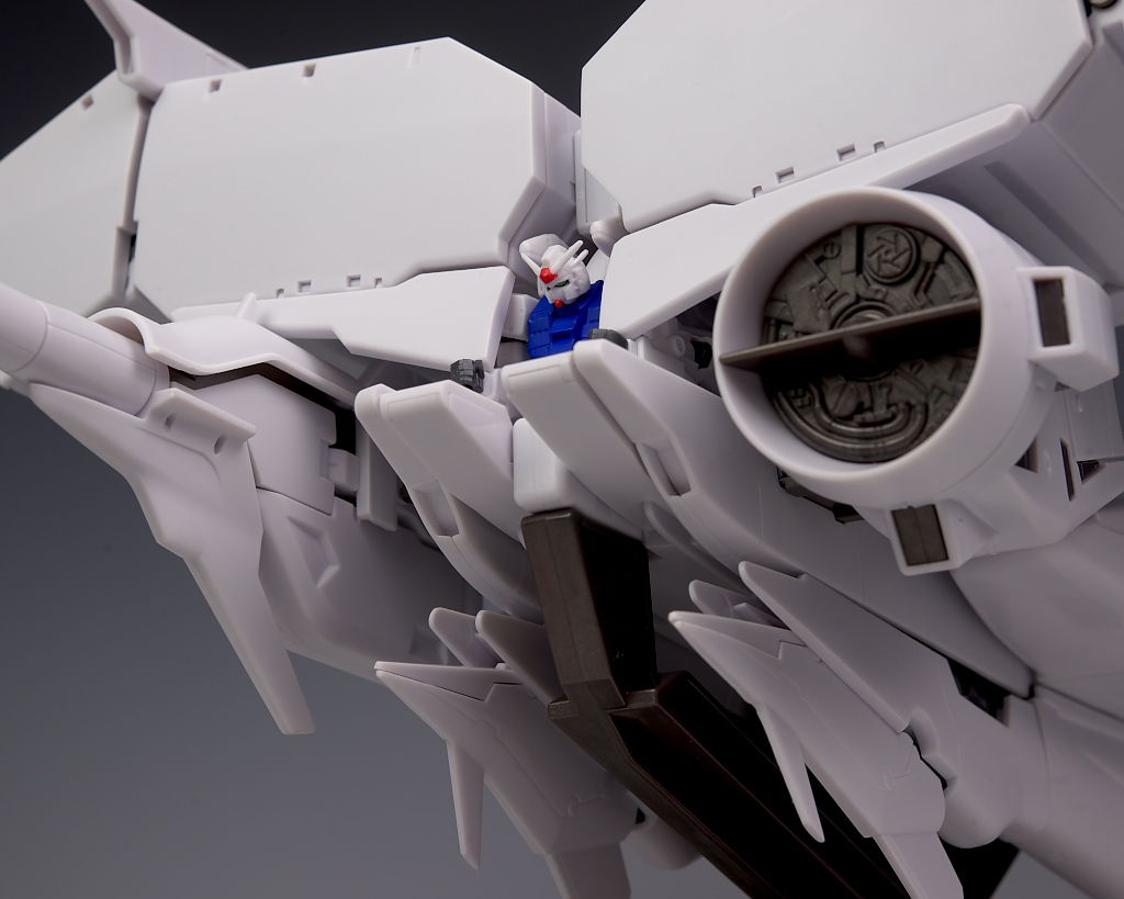 過去最高額なだけあってボリュームもそちらの2機より更に増しており、ギミックもかなりの部分を再現、白部分が多いので多少安っぽく見える箇所もありますが、ウェポンコンテナを展開し大型ビームサーベルを持たせたりすると相当な迫力でした。
