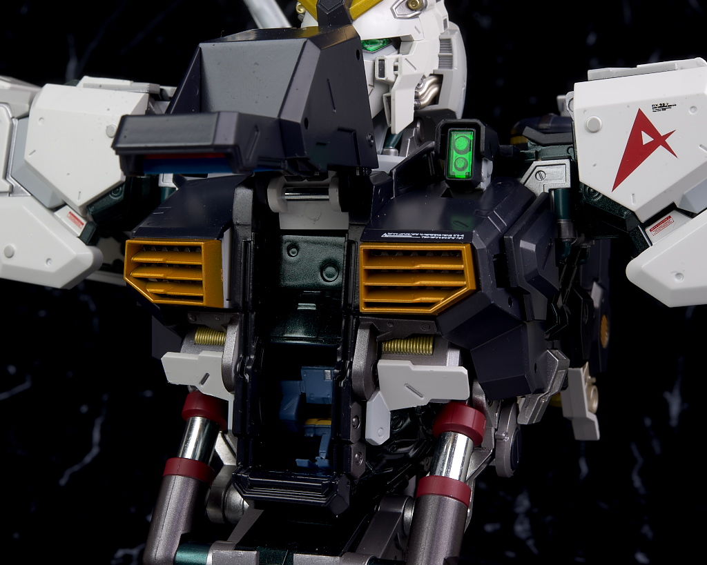 各部位など。左上のセンサーもクリアパーツ。胸部塗装は物が映るくらいテカテカで腹部は装甲が外れた状態。
