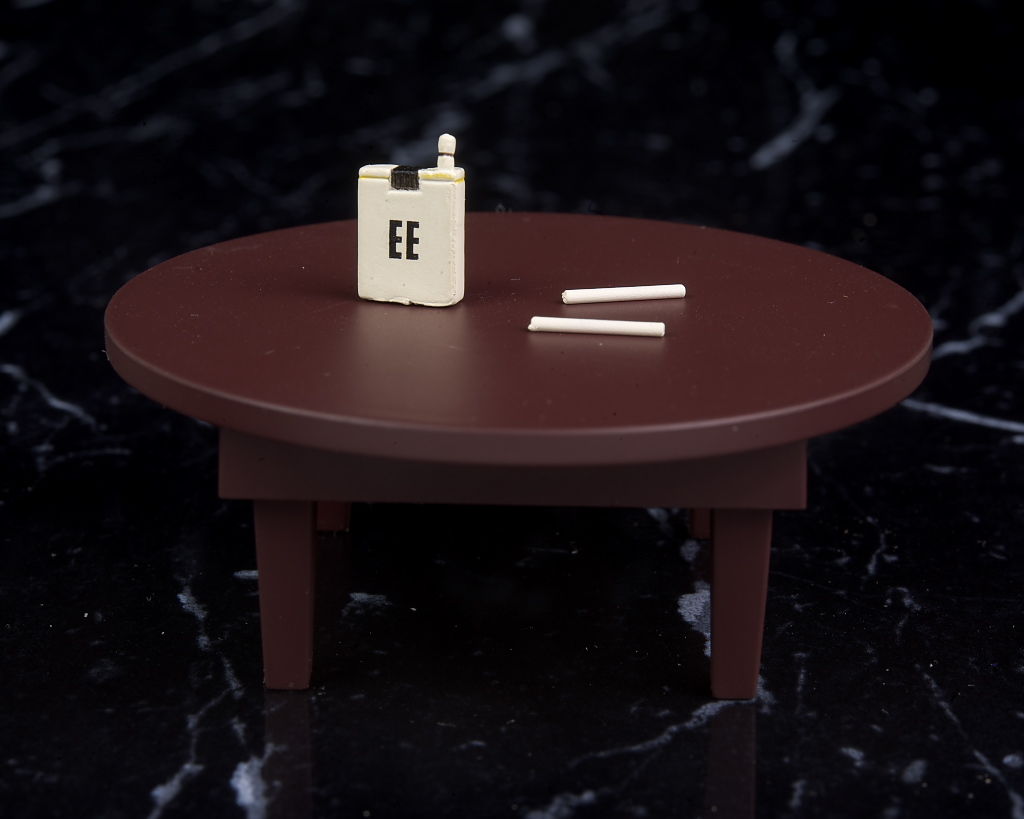ちゃぶ台。煙草は何か問題あるのか世界観再現用パーツと表記されてました。