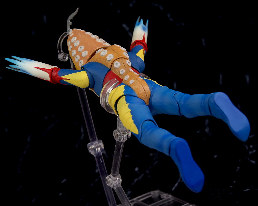 可動は見た目のわりにかなり良く首もそこそこは動き腰のスイングも広め。肩も高く上がり肘膝も深く曲げることが。