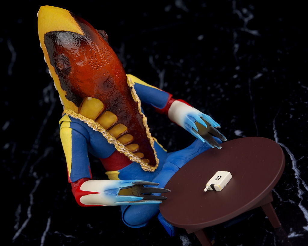 出来の方は生物的な頭部が質感など非常にリアルに再現されており、体型や体の色も劇中のイメージ通りで可動も良好、印象的なちゃぶ台まで付いてたりと本体、オプション共に凝った内容になってました。